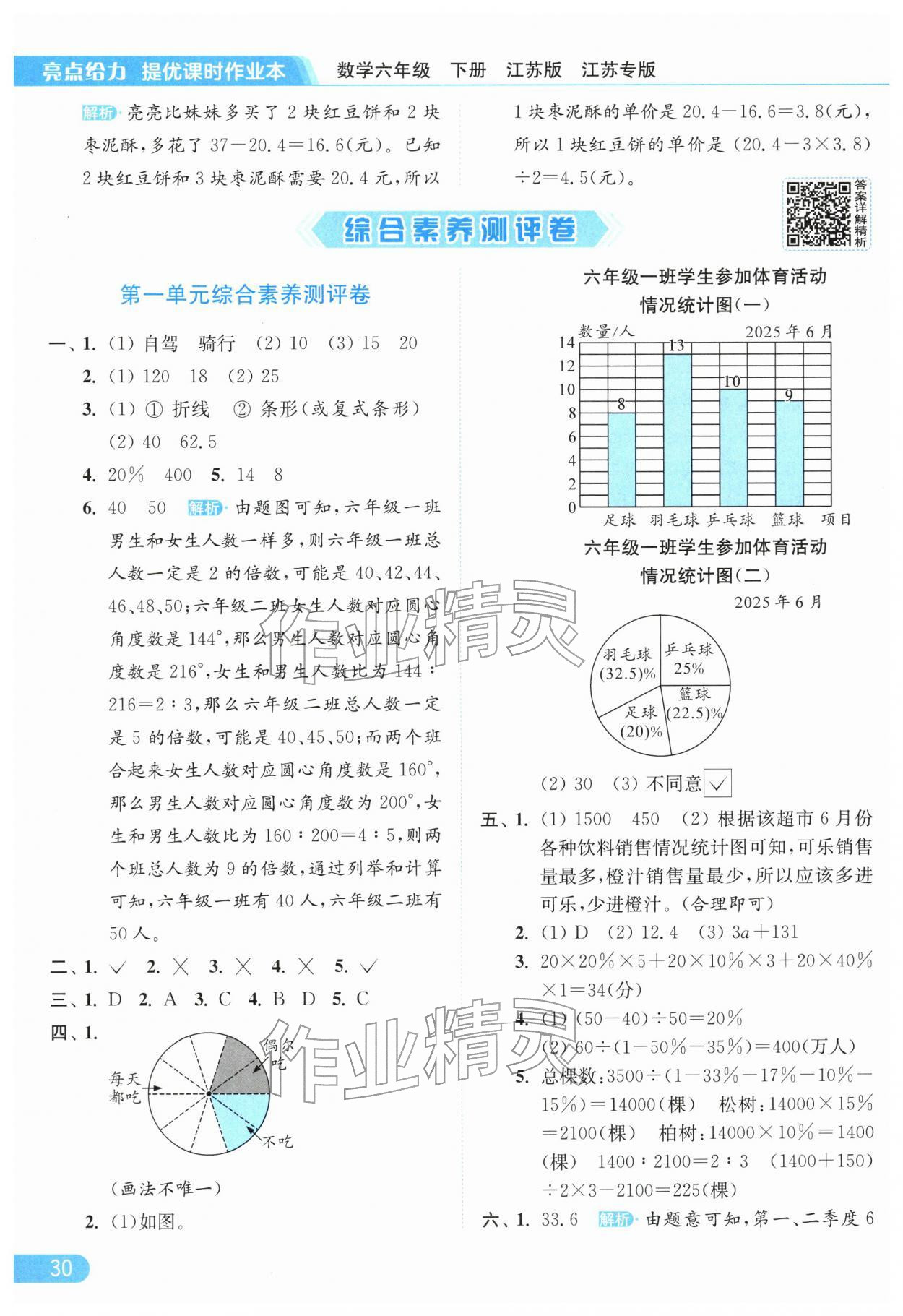 2026年亮点给力提优课时作业本六年级数学下册苏教版江苏专版参考答案第30页