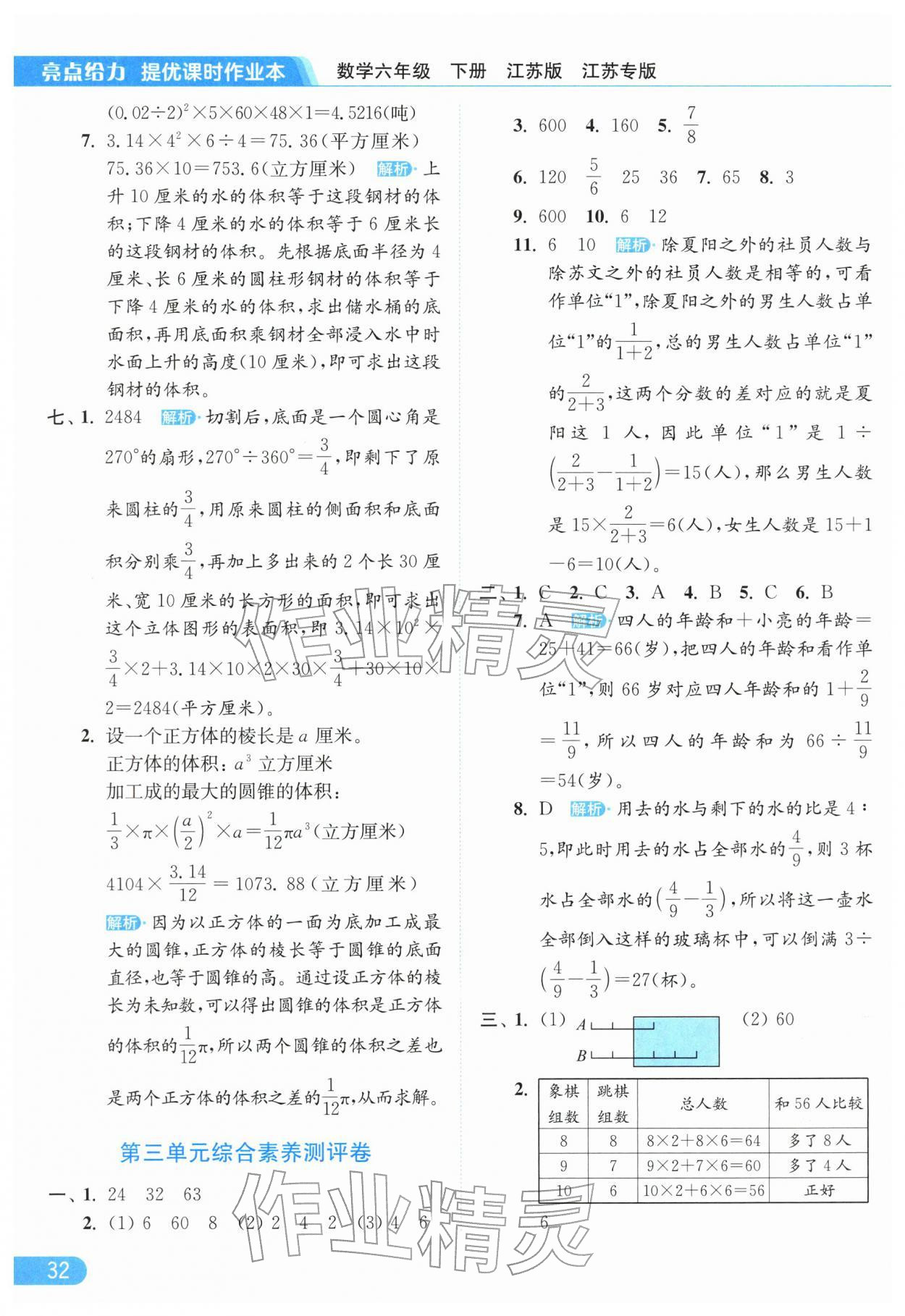 2026年亮点给力提优课时作业本六年级数学下册苏教版江苏专版参考答案第32页