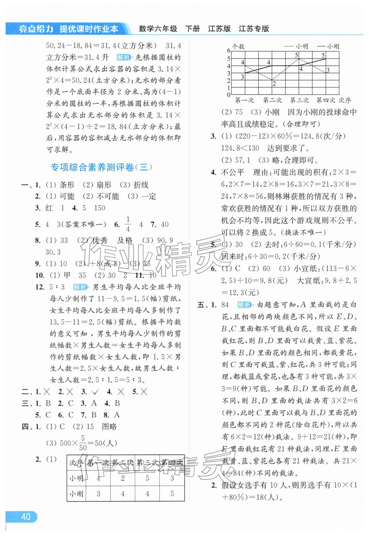 2026年亮点给力提优课时作业本六年级数学下册苏教版江苏专版参考答案第40页