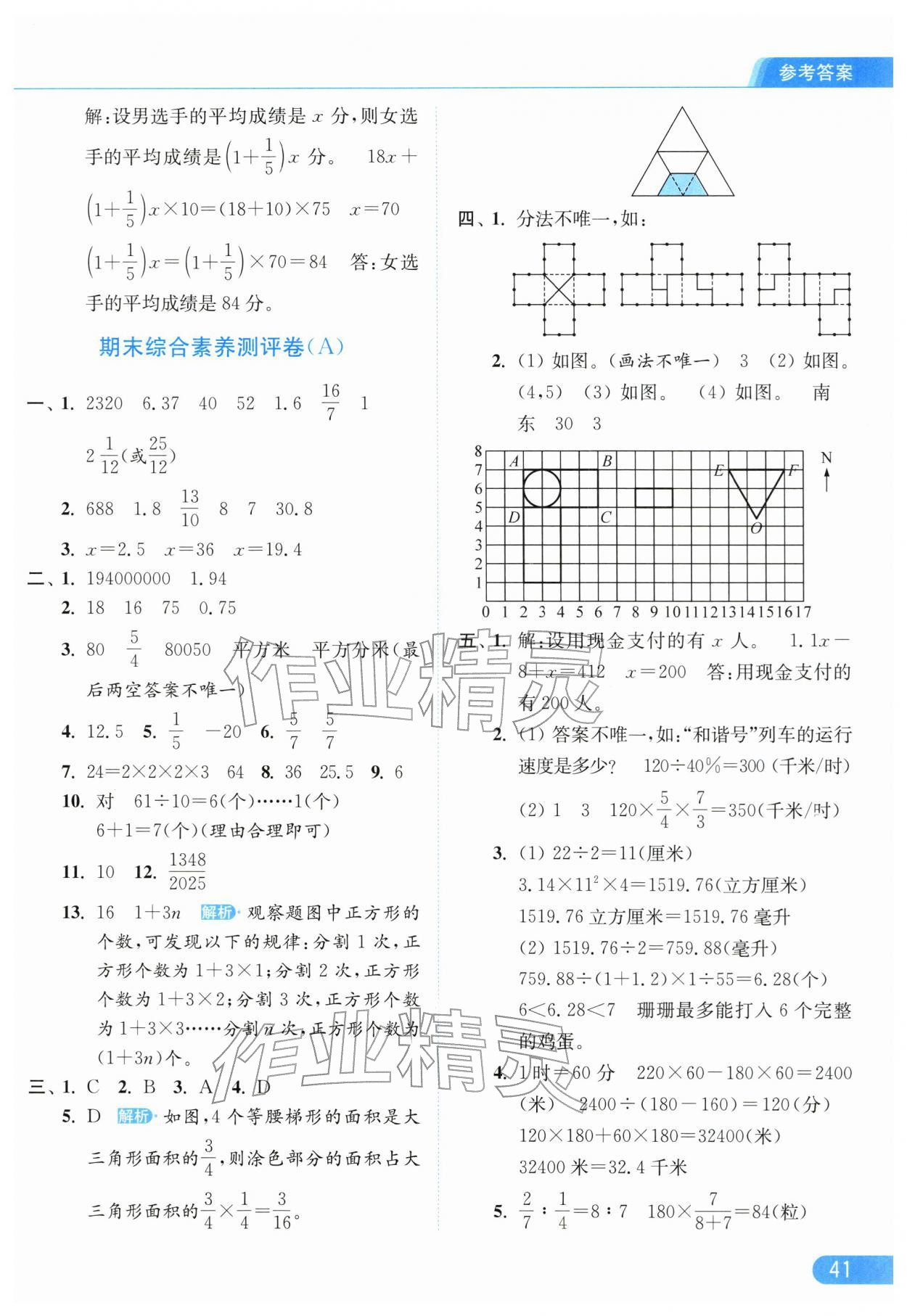 2026年亮点给力提优课时作业本六年级数学下册苏教版江苏专版参考答案第41页