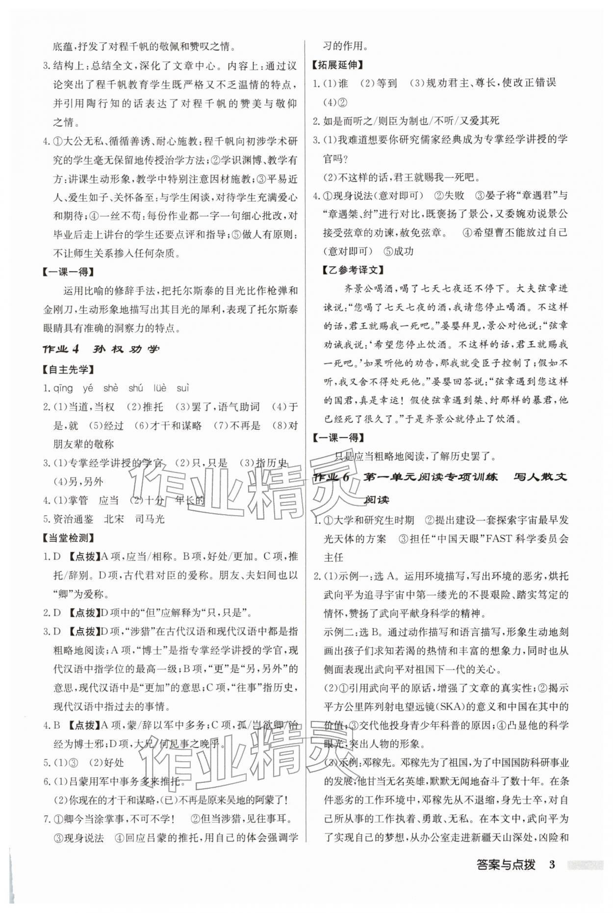 2026年启东中学作业本七年级语文下册人教版第3页