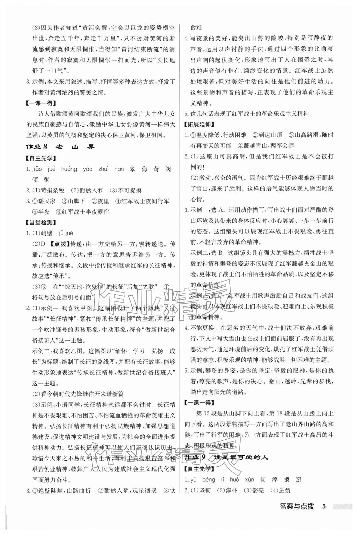 2026年启东中学作业本七年级语文下册人教版第5页
