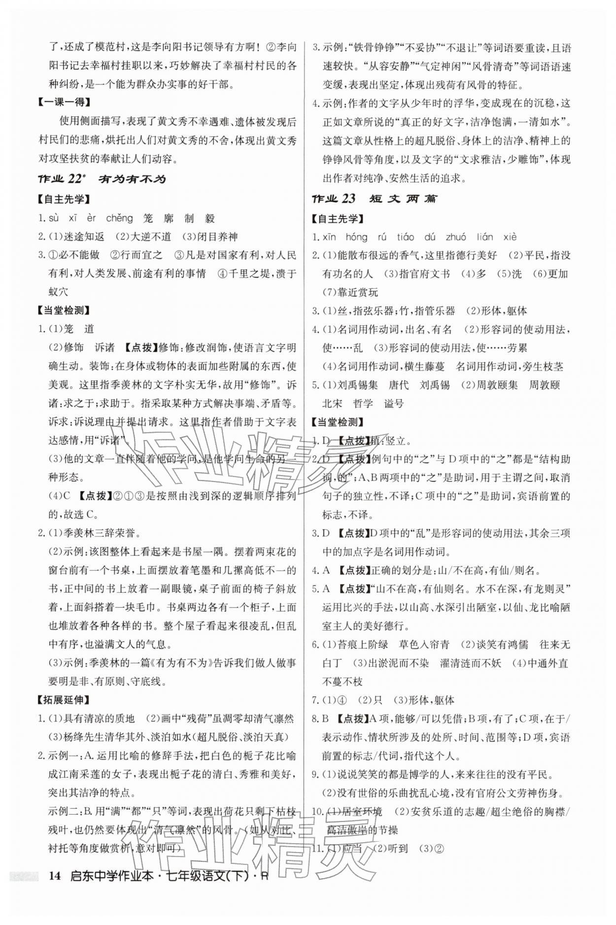 2026年启东中学作业本七年级语文下册人教版第14页