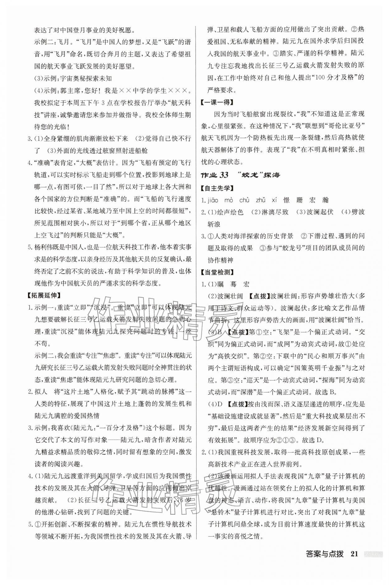 2026年启东中学作业本七年级语文下册人教版第21页