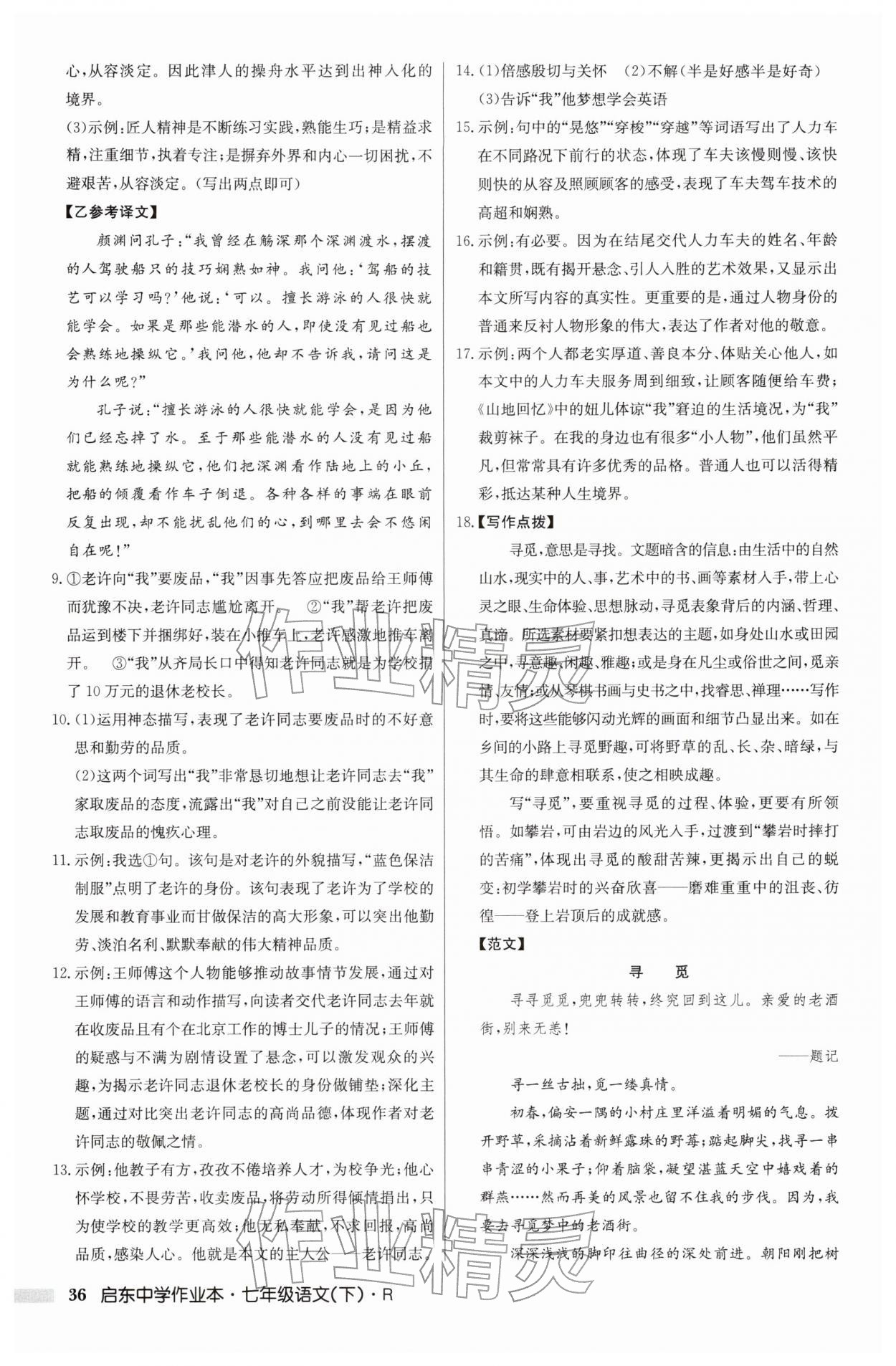 2026年启东中学作业本七年级语文下册人教版第36页
