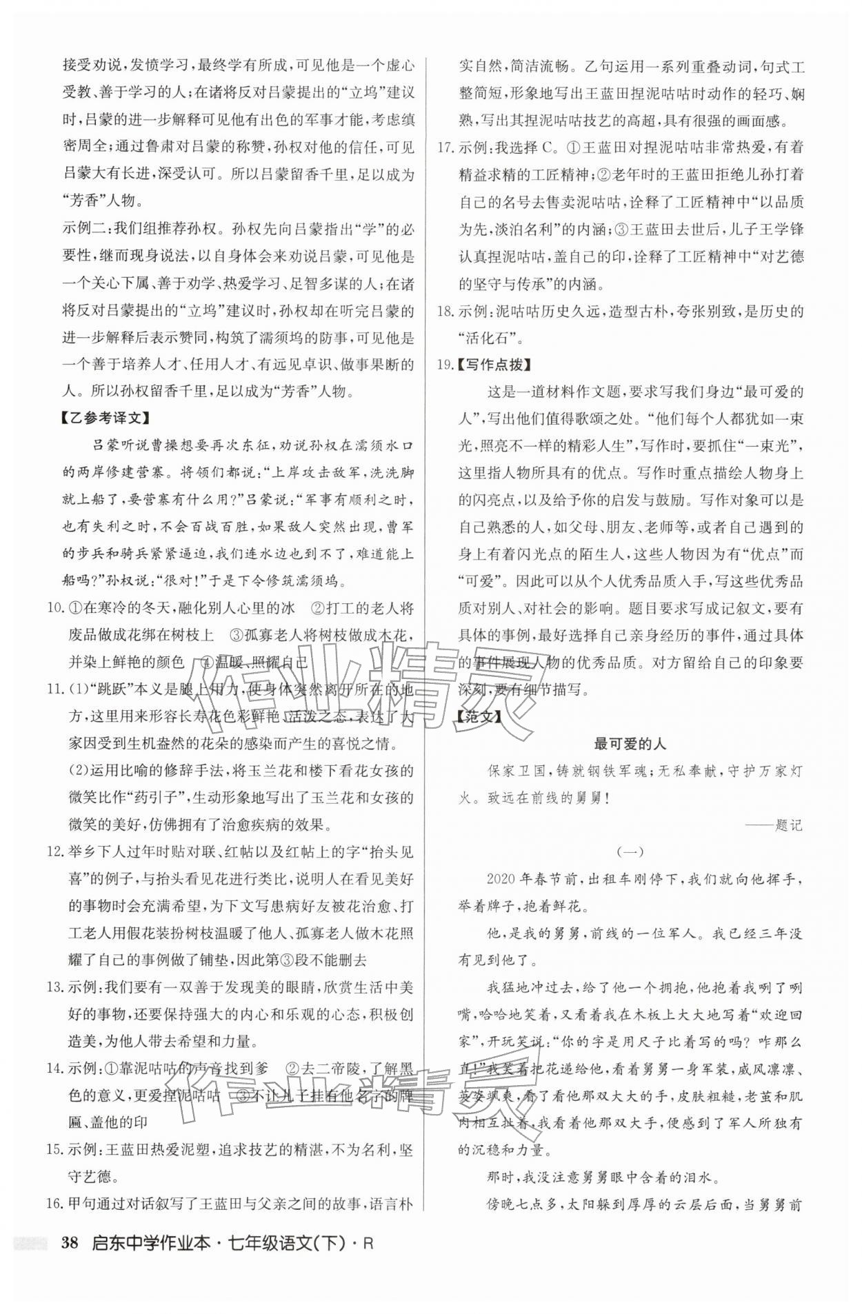 2026年启东中学作业本七年级语文下册人教版第38页