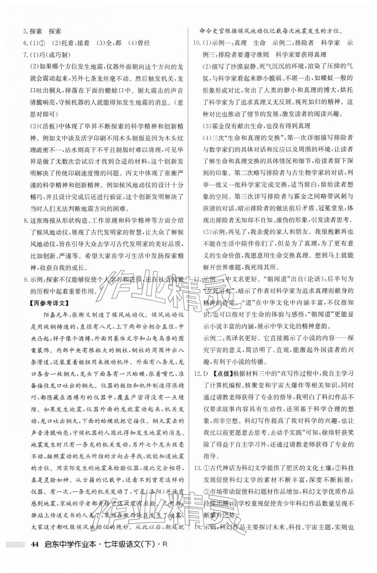 2026年启东中学作业本七年级语文下册人教版第44页