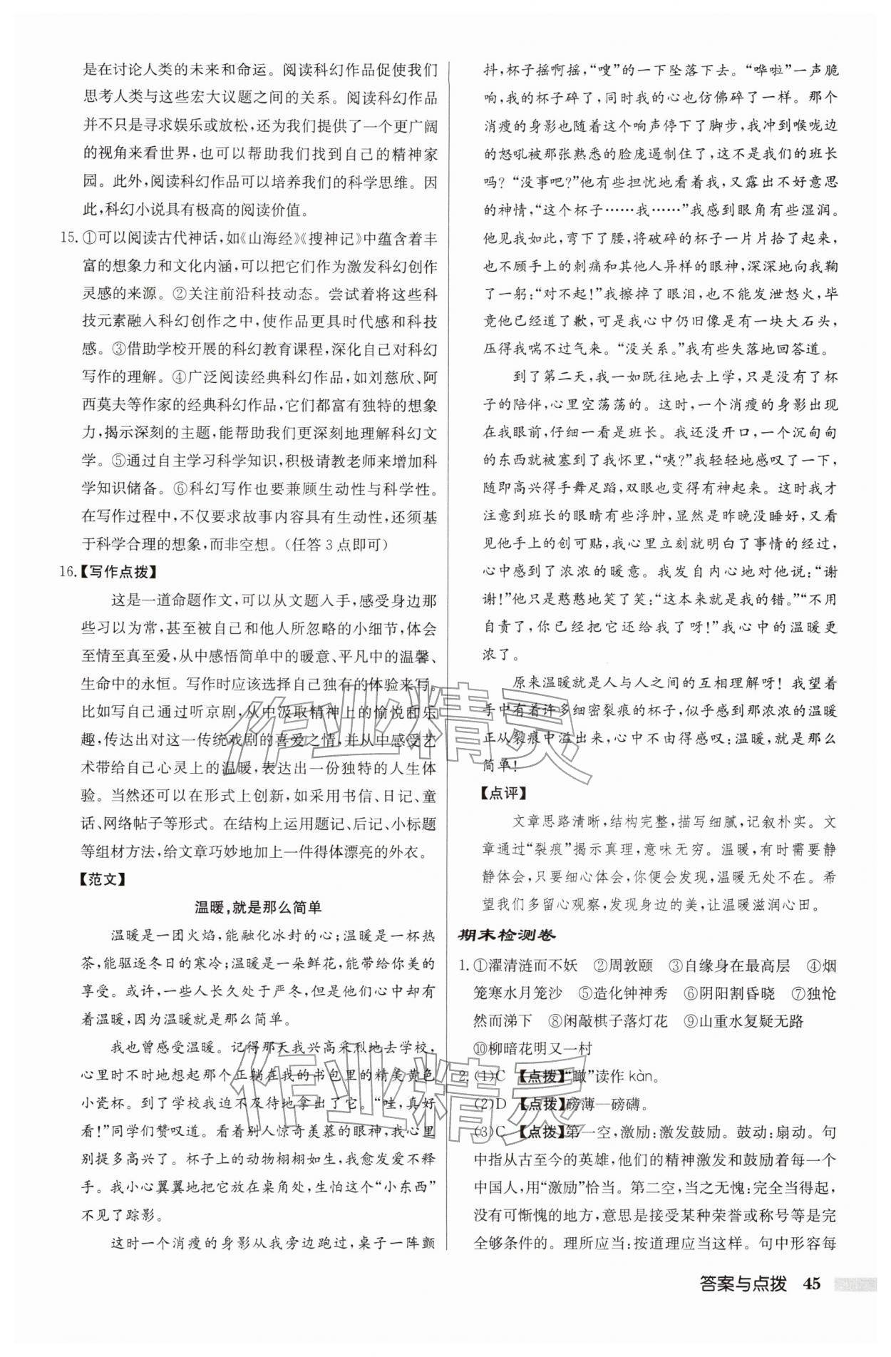 2026年启东中学作业本七年级语文下册人教版第45页