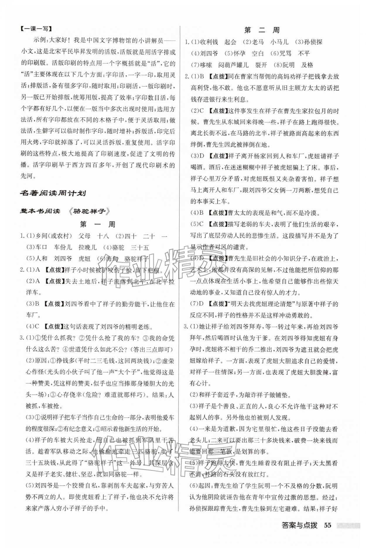 2026年启东中学作业本七年级语文下册人教版第55页