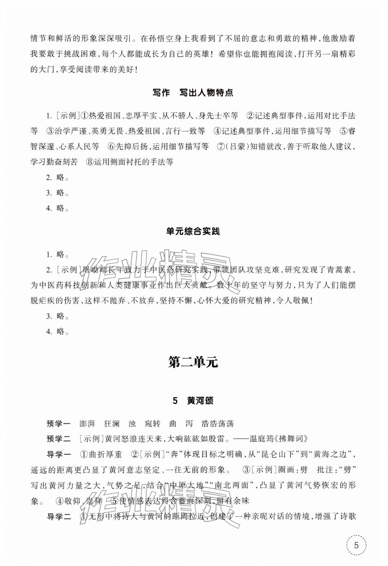 2026年作业本浙江教育出版社七年级语文下册人教版参考答案第5页