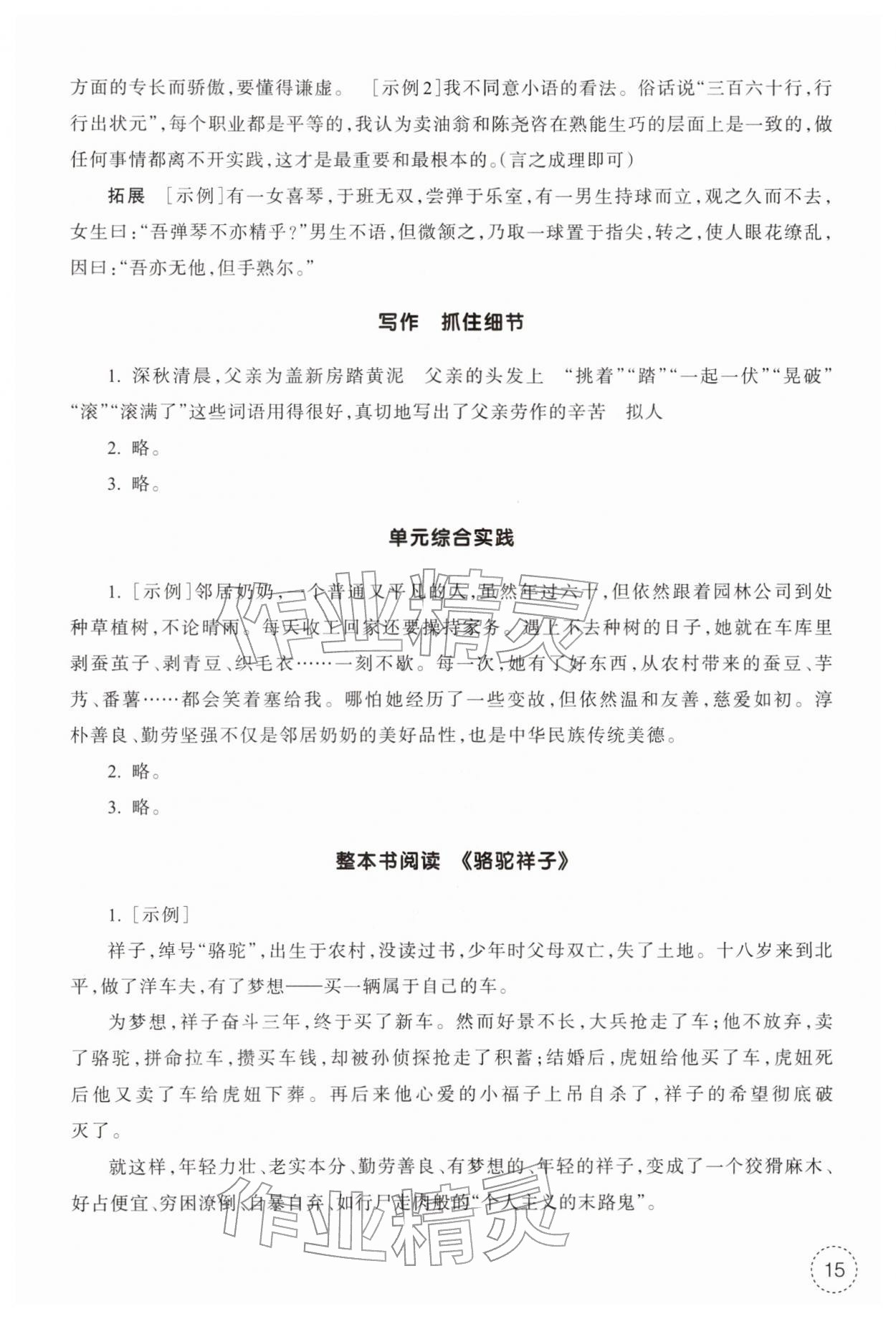 2026年作业本浙江教育出版社七年级语文下册人教版参考答案第15页