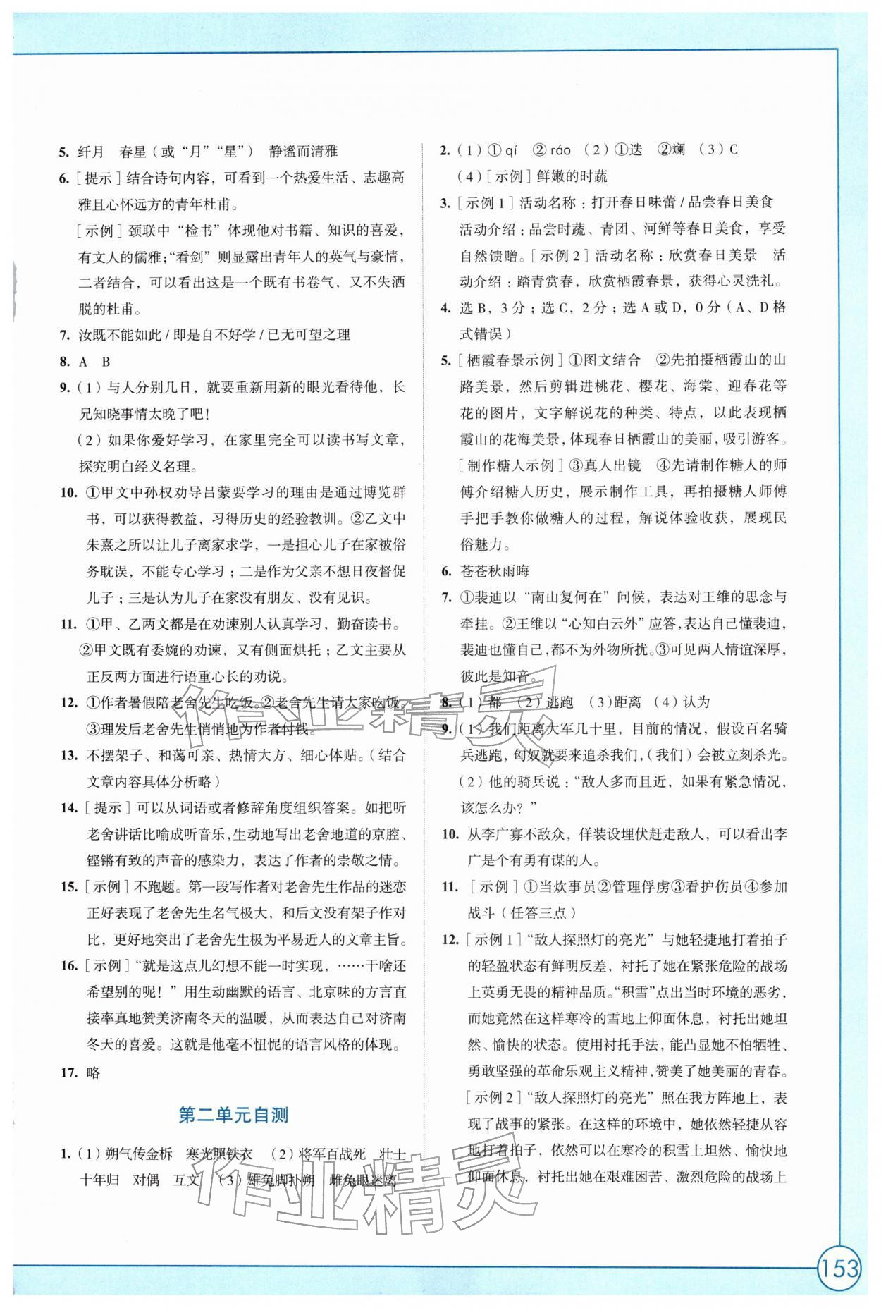 2026年学习与评价江苏凤凰教育出版社七年级语文下册人教版参考答案第17页