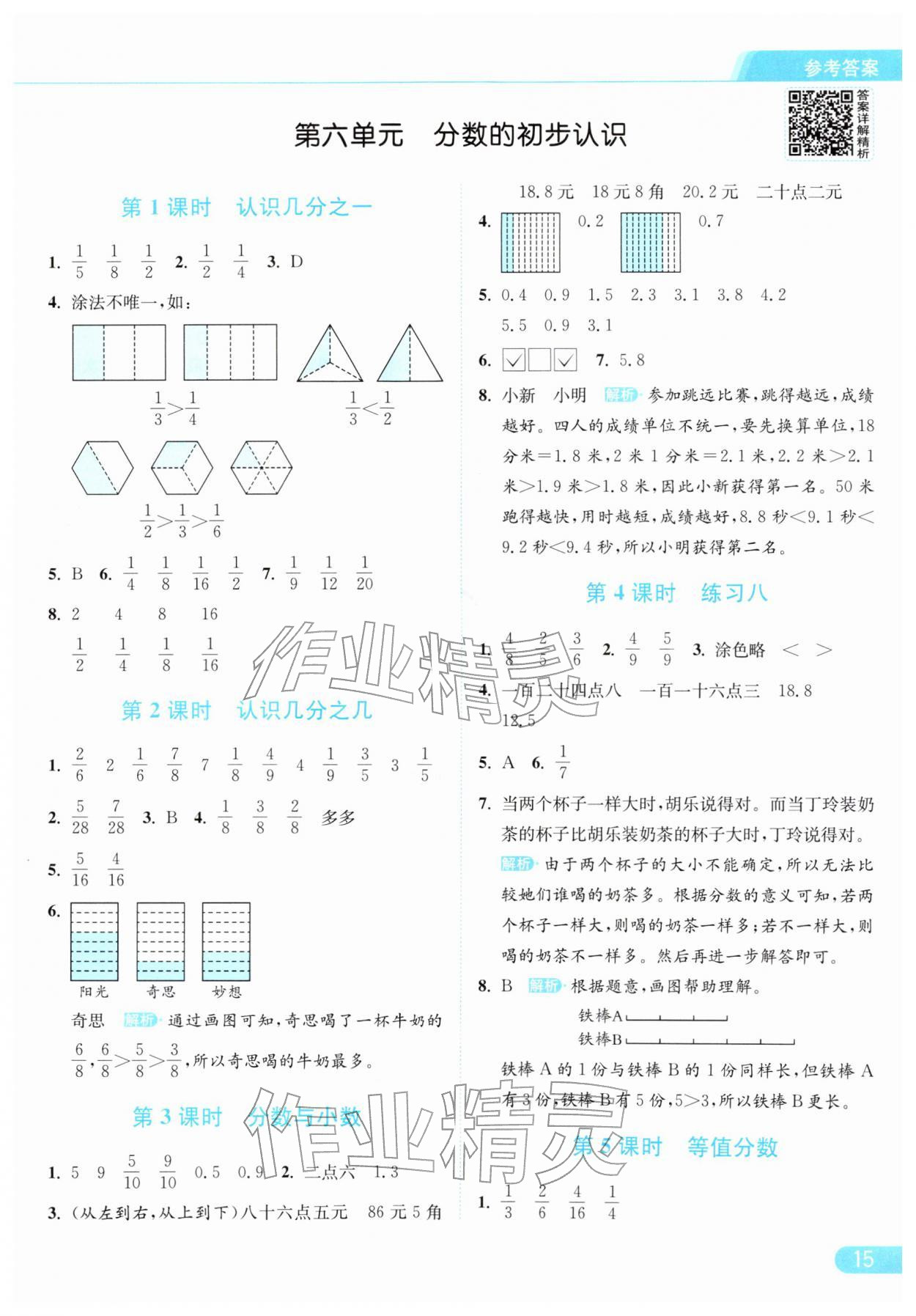 2026年亮点给力提优课时作业本三年级数学下册江苏版参考答案第15页