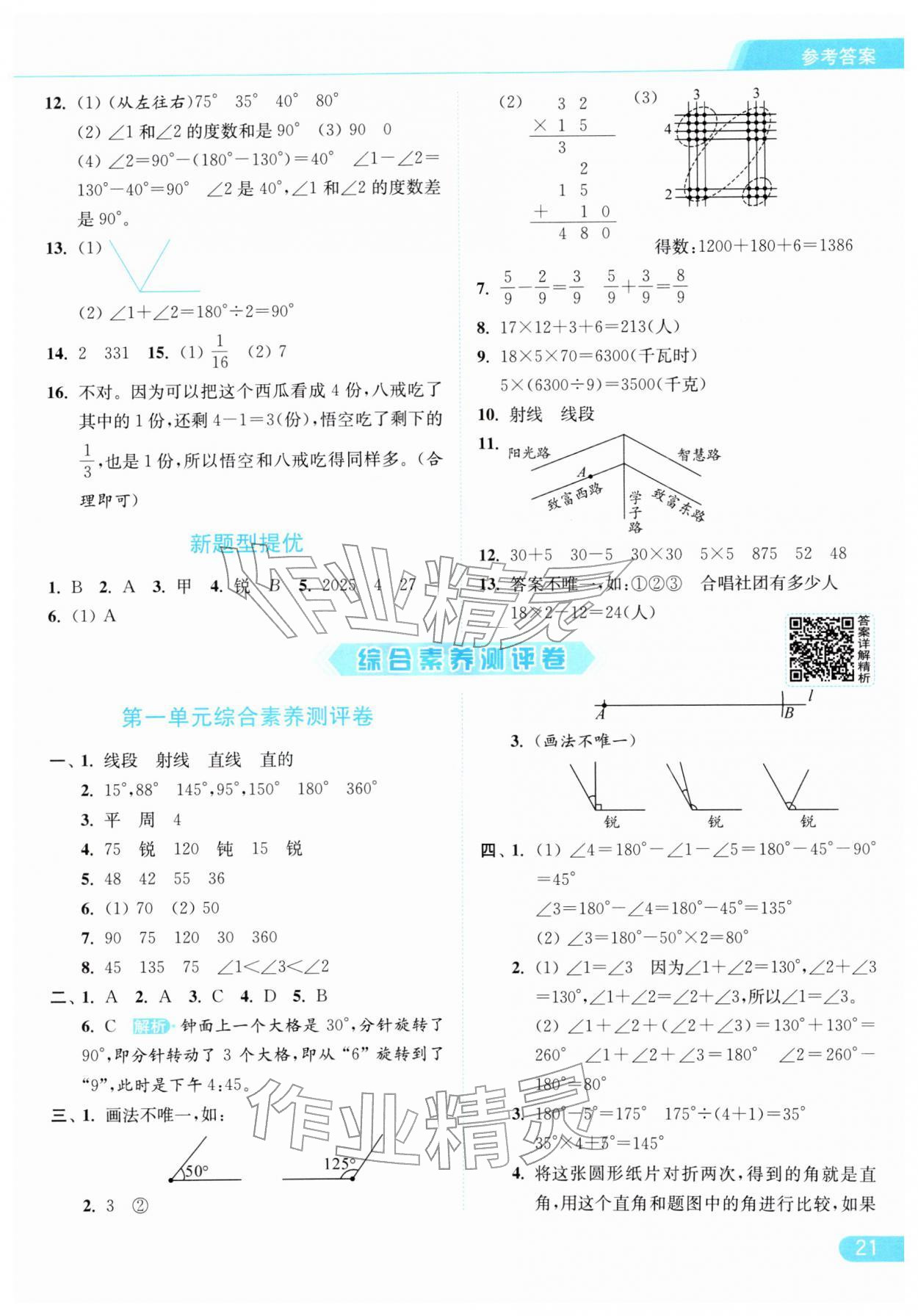 2026年亮点给力提优课时作业本三年级数学下册江苏版参考答案第21页
