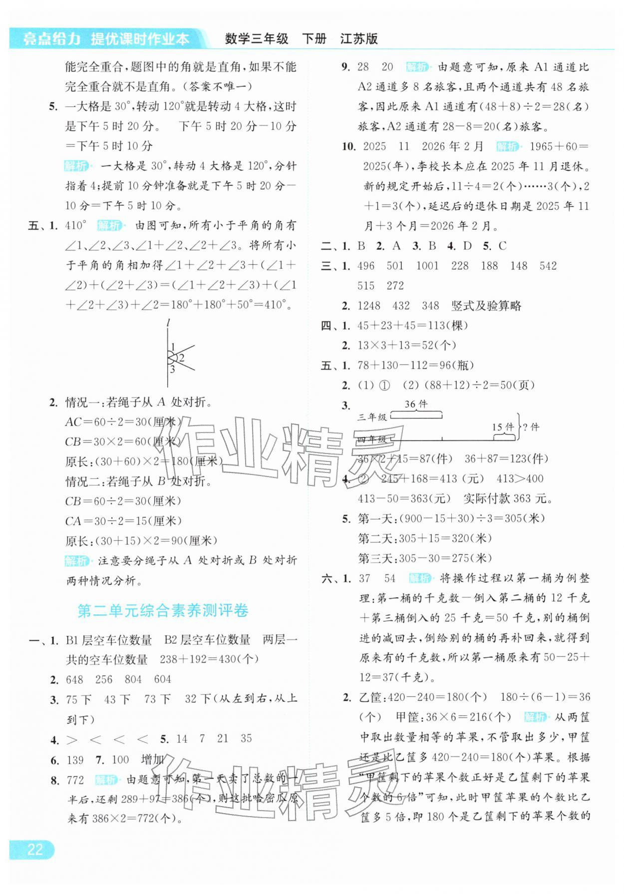 2026年亮点给力提优课时作业本三年级数学下册江苏版参考答案第22页