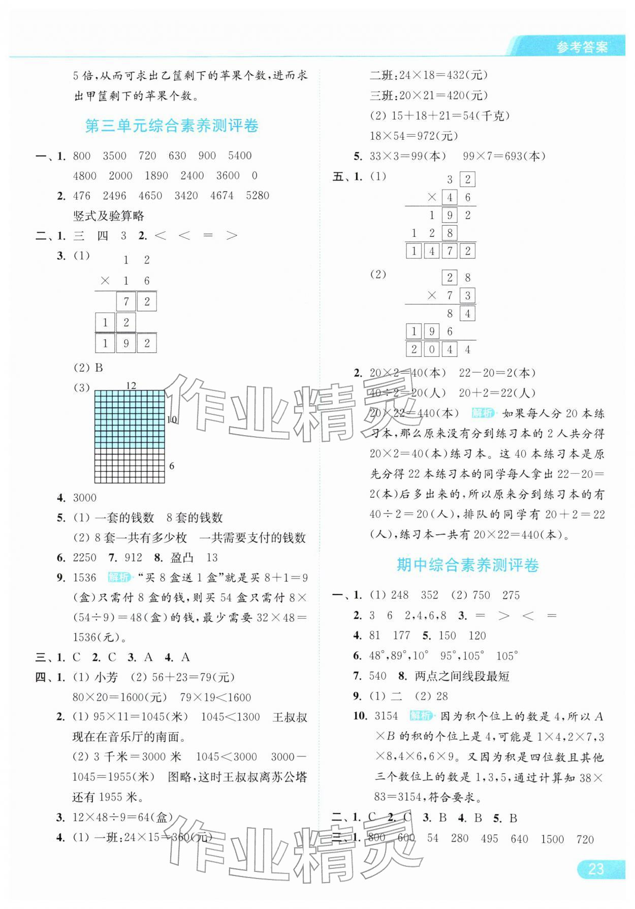 2026年亮点给力提优课时作业本三年级数学下册江苏版参考答案第23页