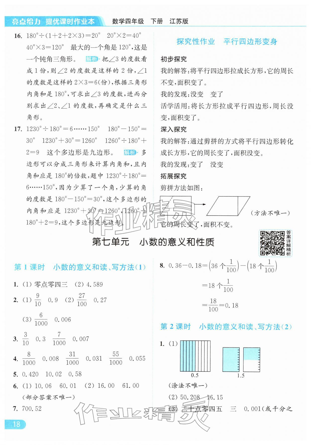 2026年亮点给力提优课时作业本四年级数学下册江苏版参考答案第18页