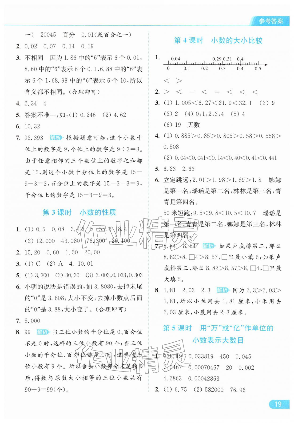 2026年亮点给力提优课时作业本四年级数学下册江苏版参考答案第19页