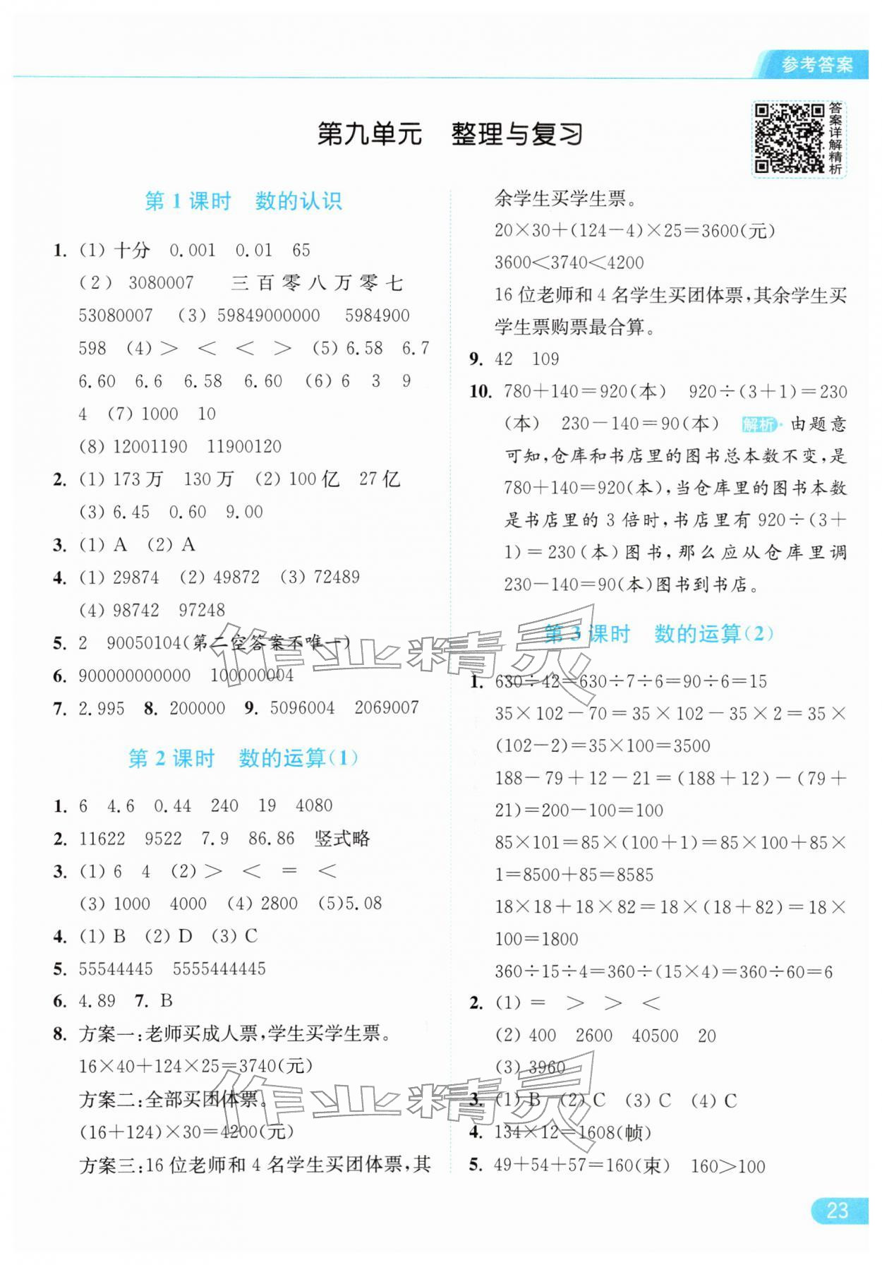 2026年亮点给力提优课时作业本四年级数学下册江苏版参考答案第23页