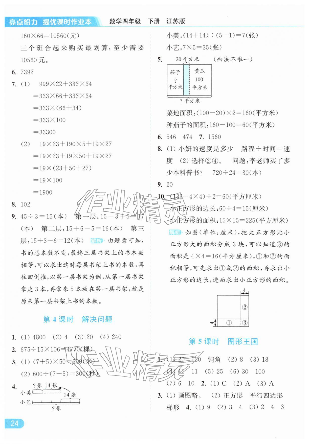 2026年亮点给力提优课时作业本四年级数学下册江苏版参考答案第24页