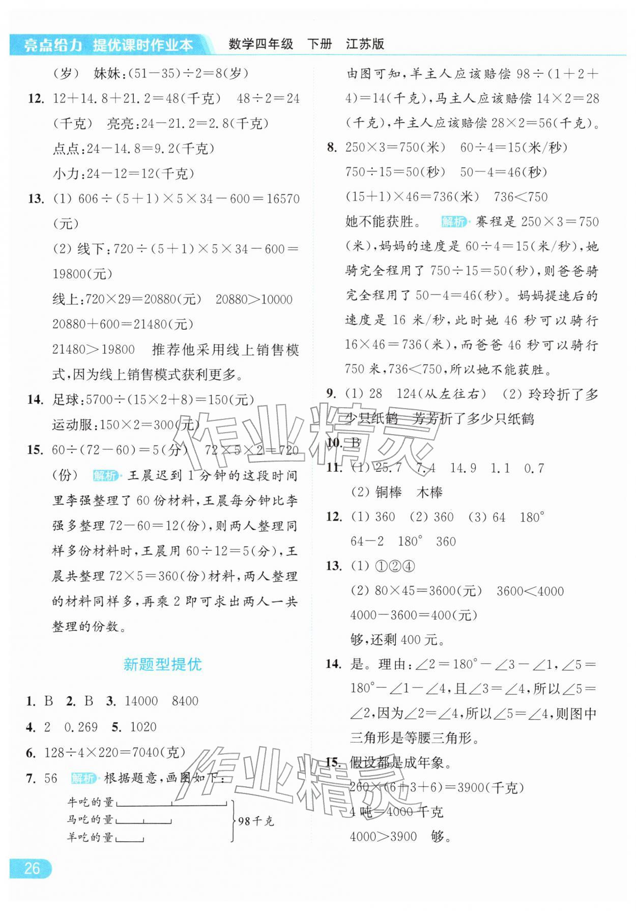 2026年亮点给力提优课时作业本四年级数学下册江苏版参考答案第26页