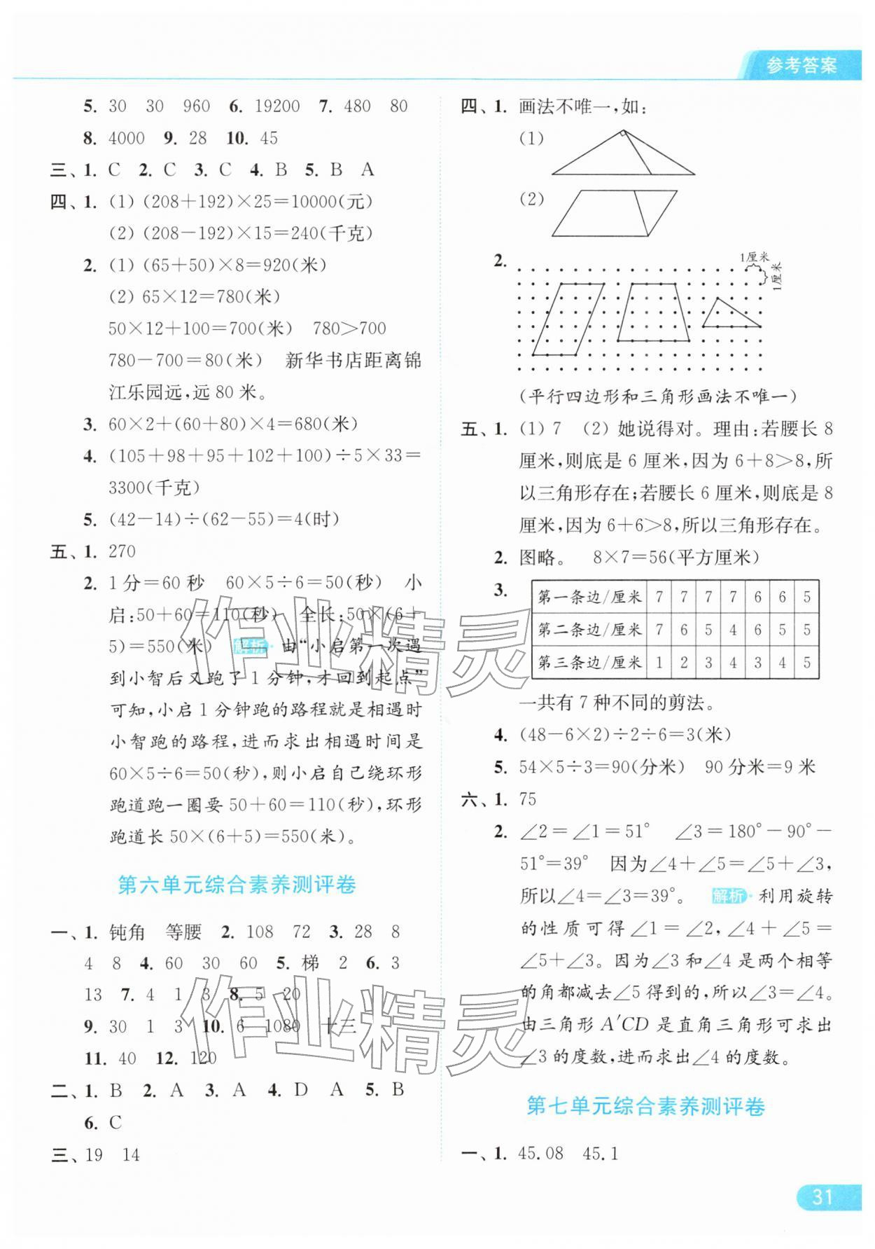 2026年亮点给力提优课时作业本四年级数学下册江苏版参考答案第31页