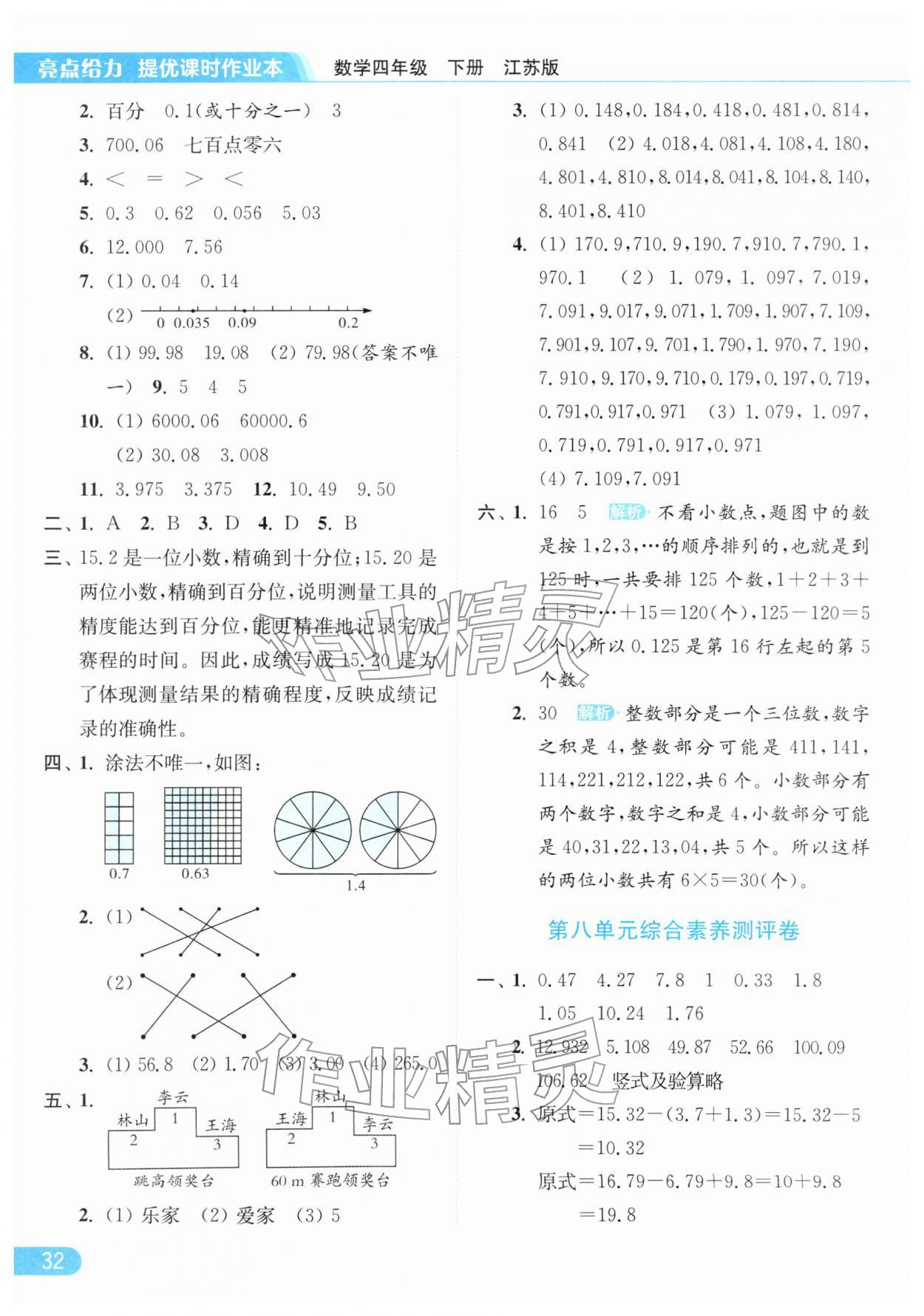 2026年亮点给力提优课时作业本四年级数学下册江苏版参考答案第32页