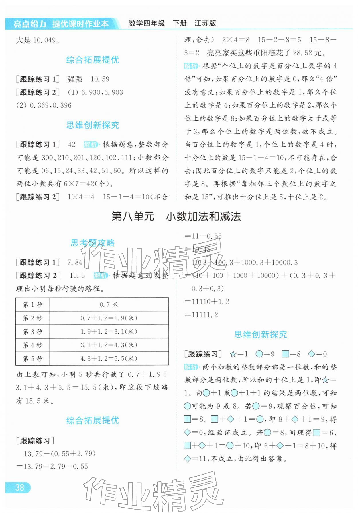2026年亮点给力提优课时作业本四年级数学下册江苏版参考答案第38页