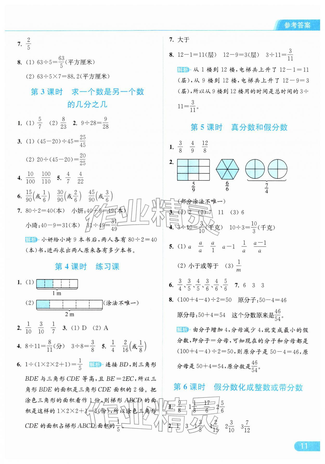 2026年亮点给力提优课时作业本五年级数学下册江苏版参考答案第11页