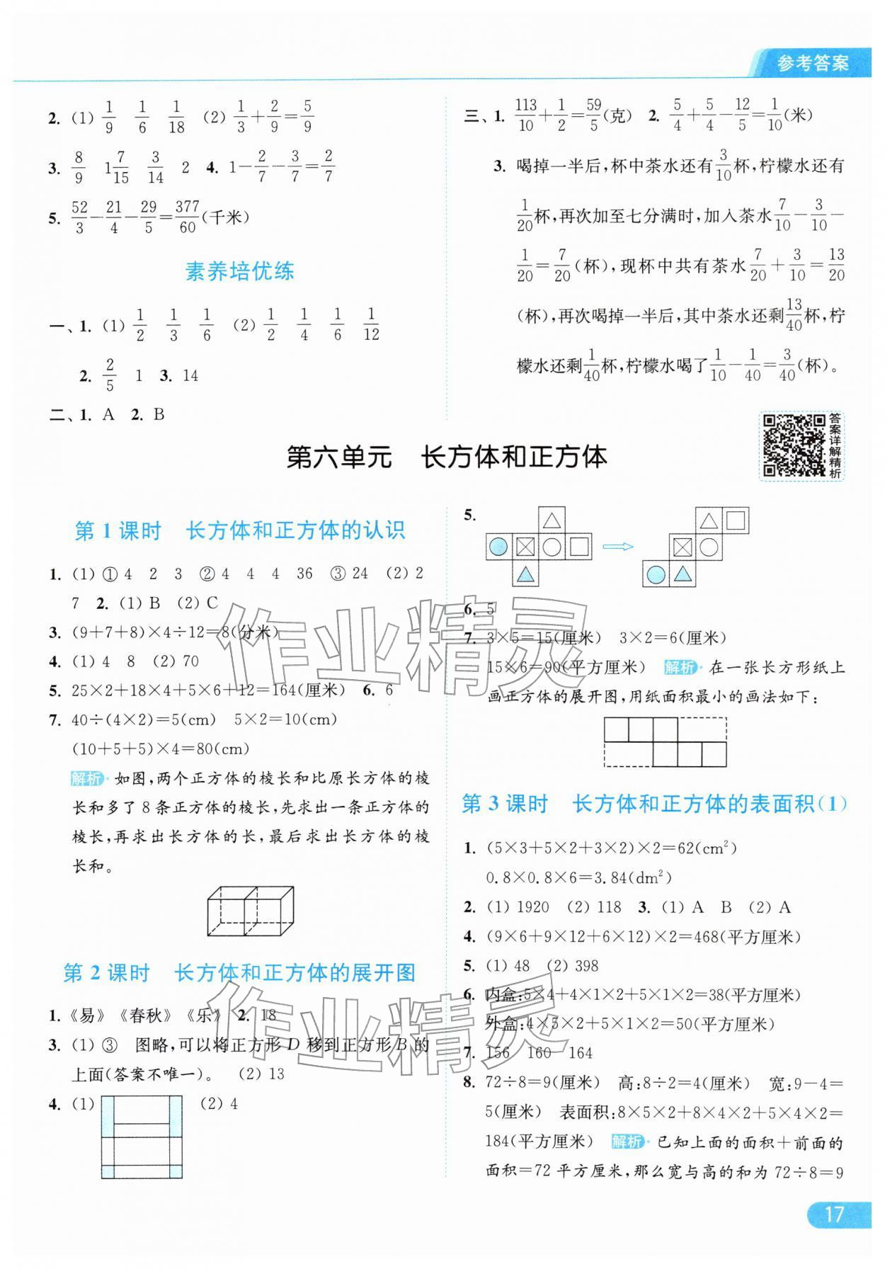 2026年亮点给力提优课时作业本五年级数学下册江苏版参考答案第17页