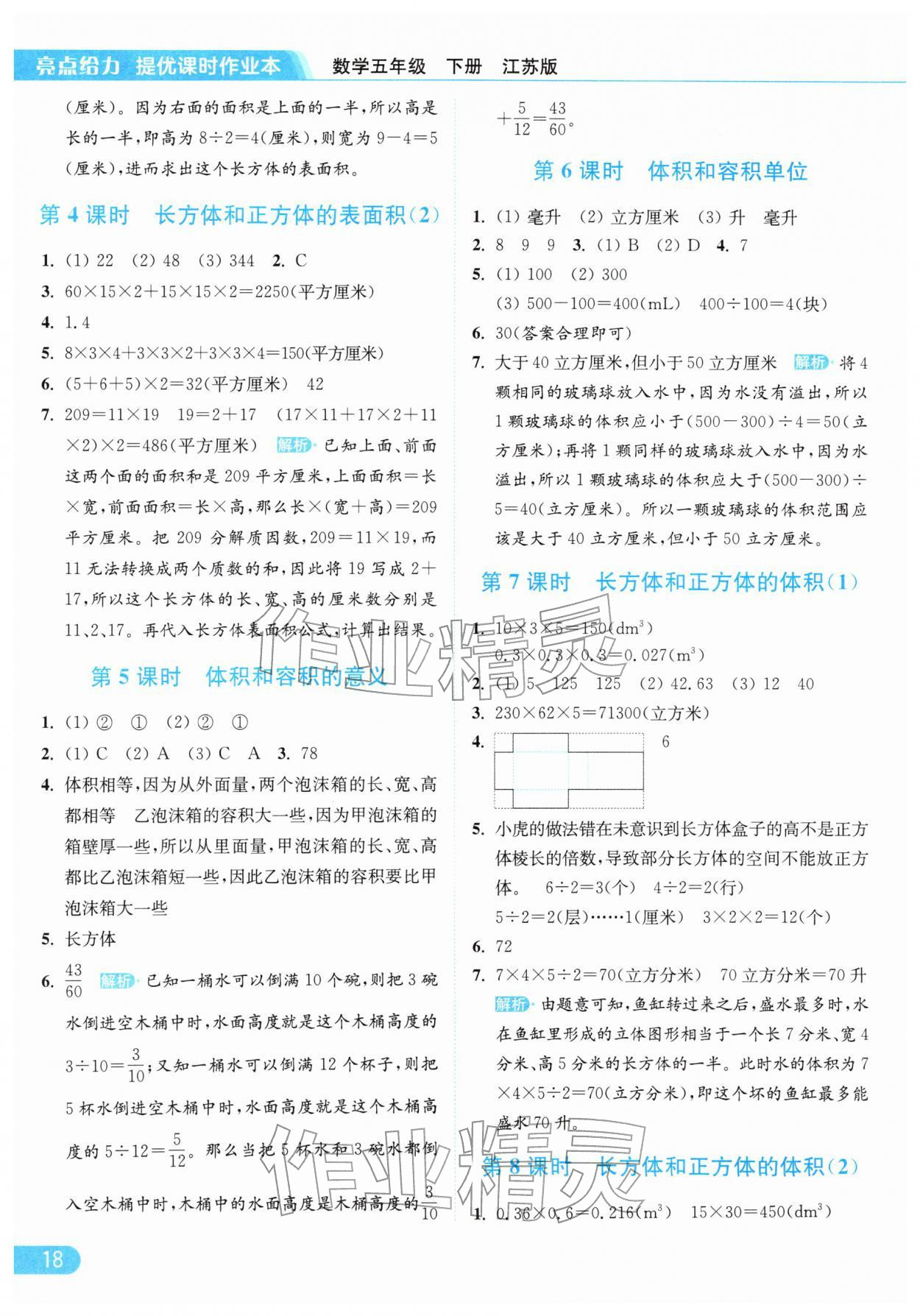 2026年亮点给力提优课时作业本五年级数学下册江苏版参考答案第18页