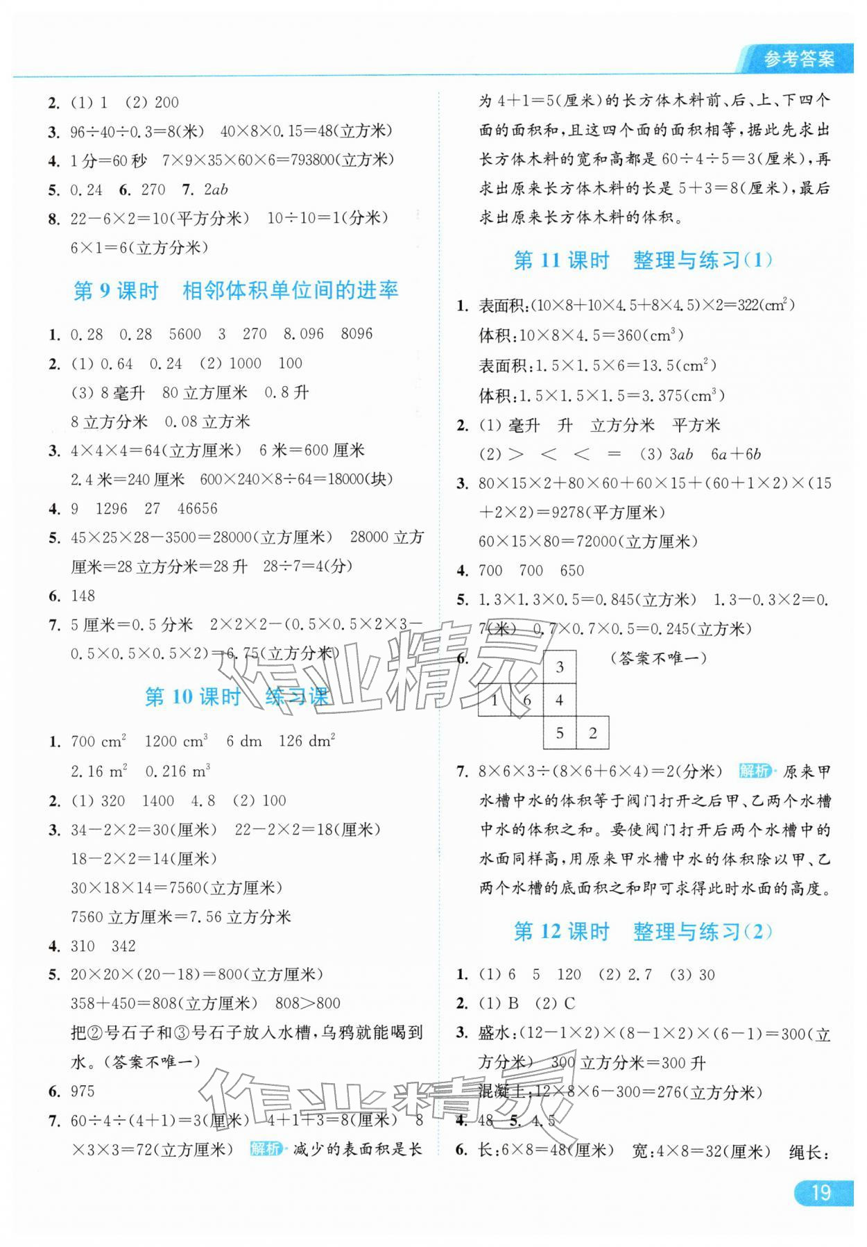 2026年亮点给力提优课时作业本五年级数学下册江苏版参考答案第19页