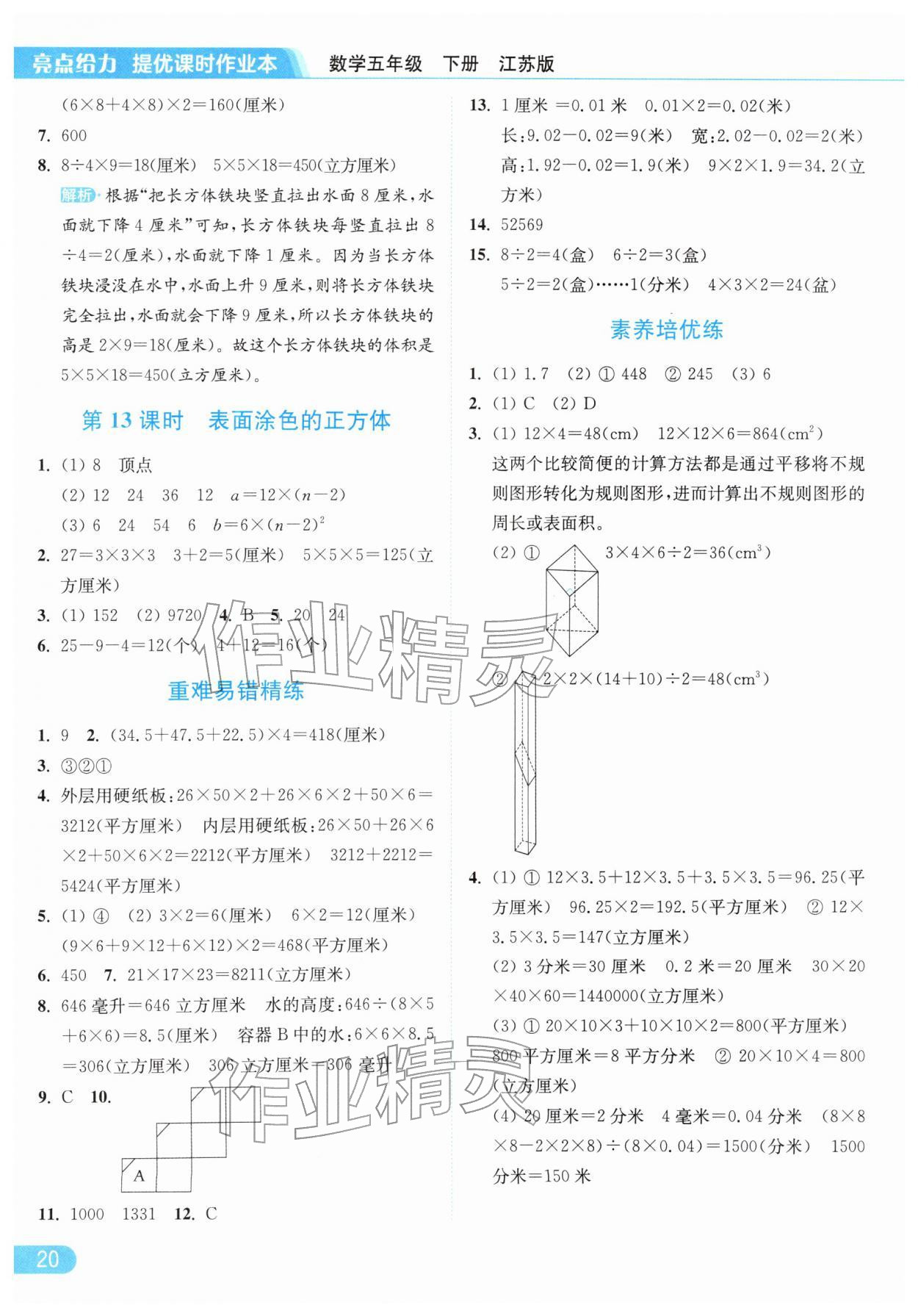 2026年亮点给力提优课时作业本五年级数学下册江苏版参考答案第20页