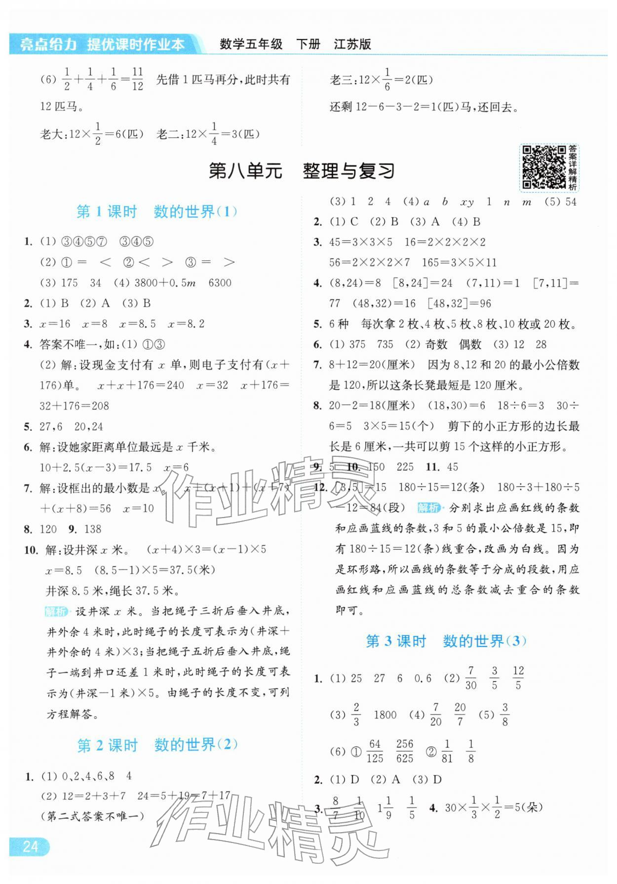 2026年亮点给力提优课时作业本五年级数学下册江苏版参考答案第24页