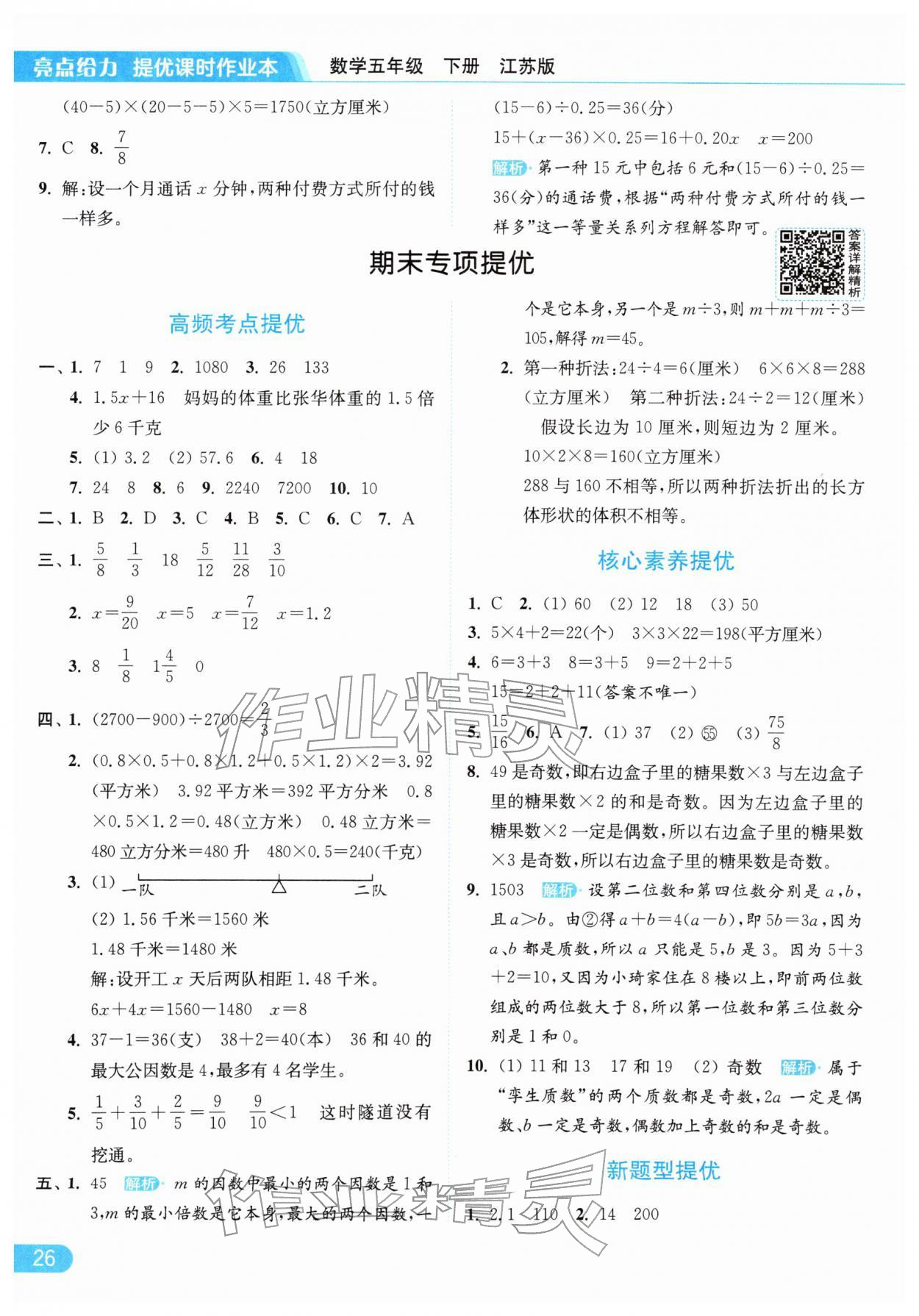 2026年亮点给力提优课时作业本五年级数学下册江苏版参考答案第26页