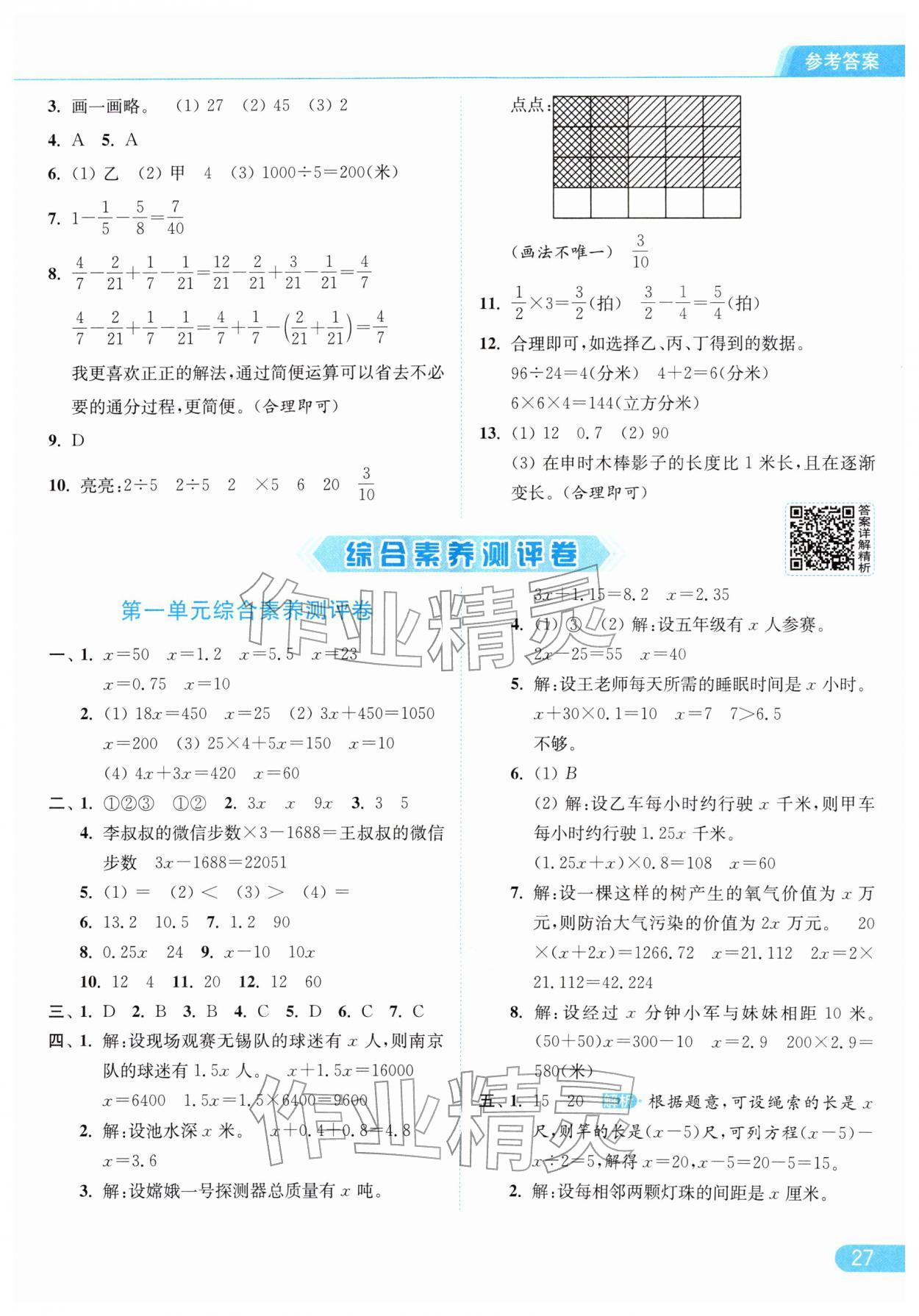 2026年亮点给力提优课时作业本五年级数学下册江苏版参考答案第27页