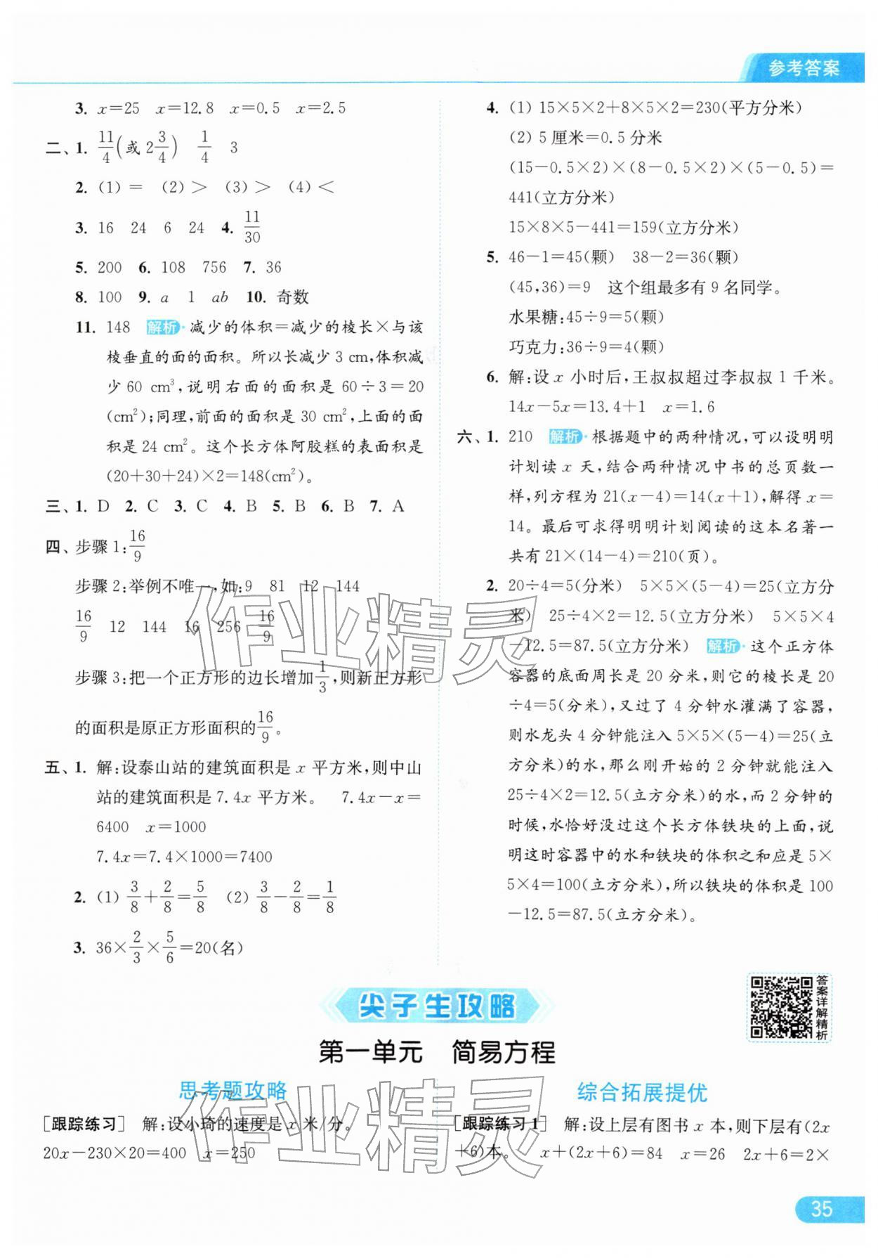2026年亮点给力提优课时作业本五年级数学下册江苏版参考答案第35页