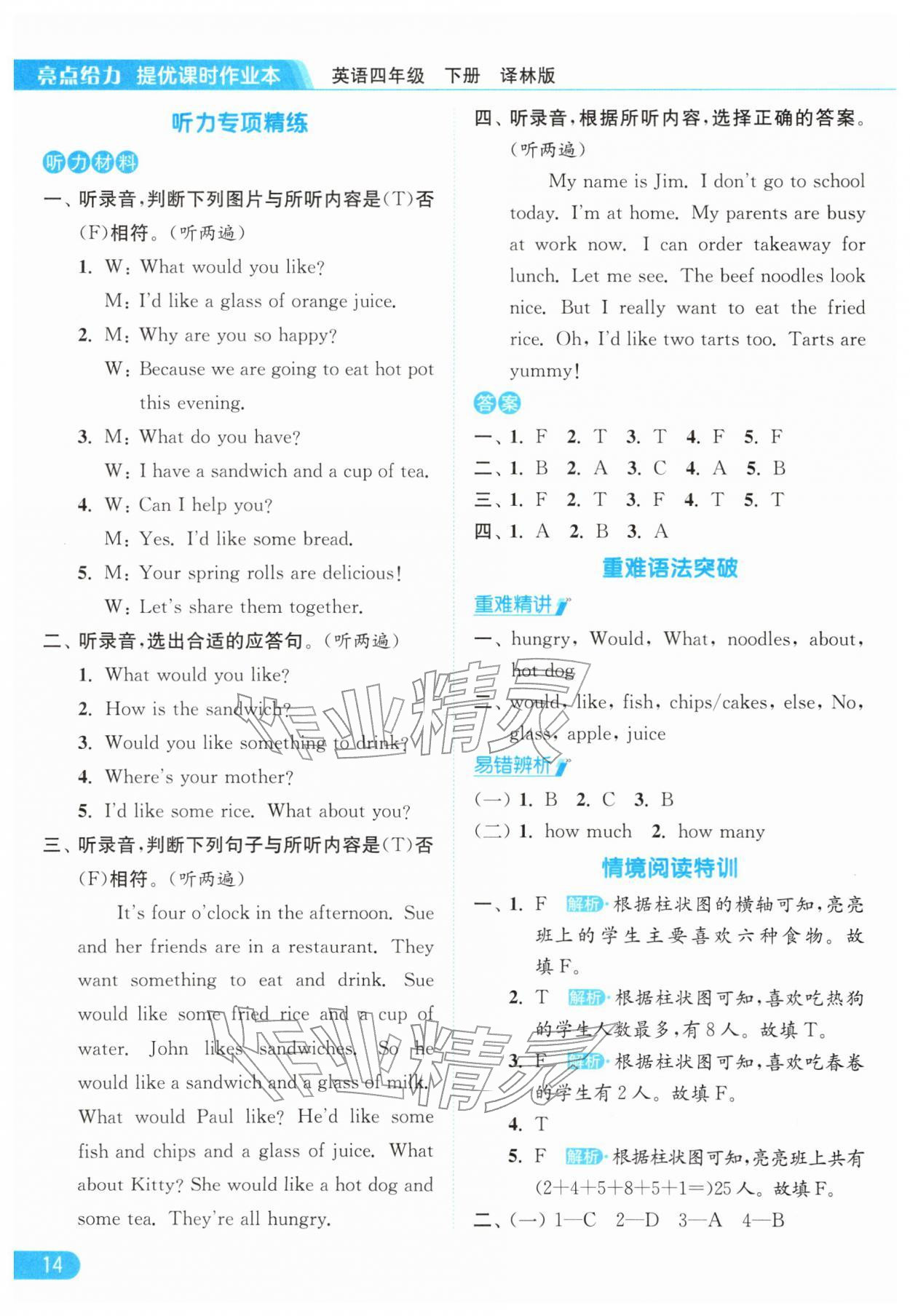 2026年亮点给力提优课时作业本四年级英语下册译林版第14页