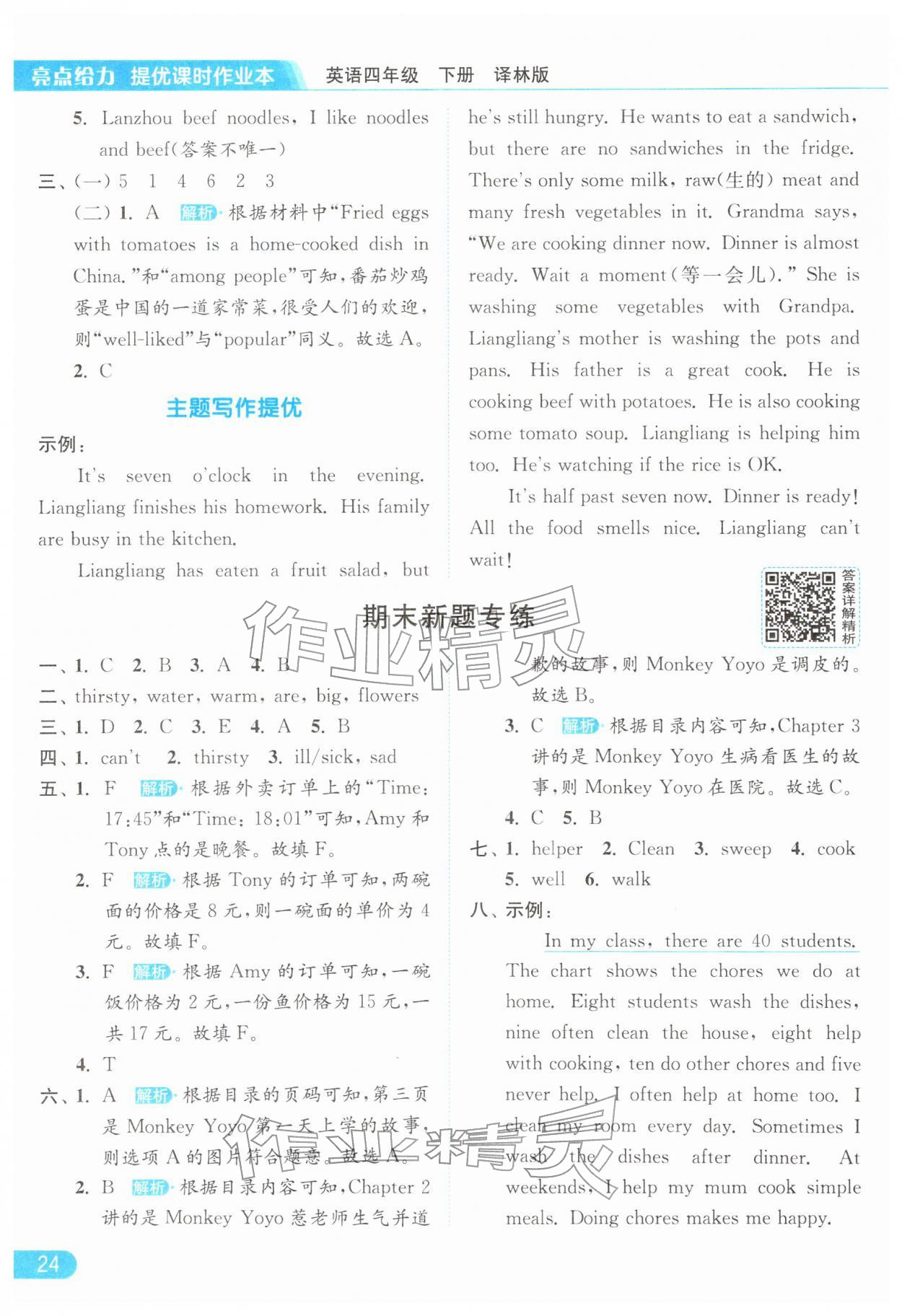 2026年亮点给力提优课时作业本四年级英语下册译林版第24页