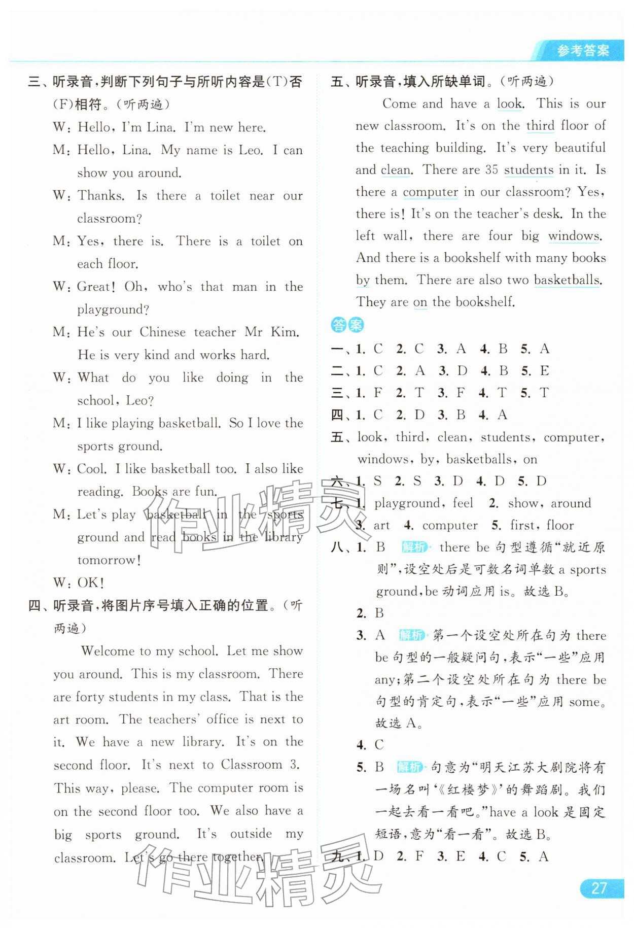 2026年亮点给力提优课时作业本四年级英语下册译林版第27页