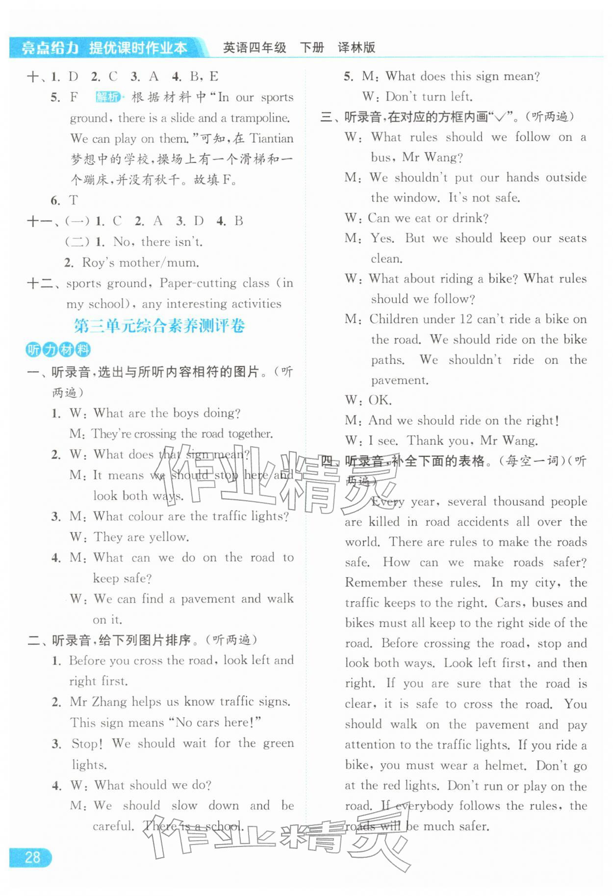 2026年亮点给力提优课时作业本四年级英语下册译林版第28页