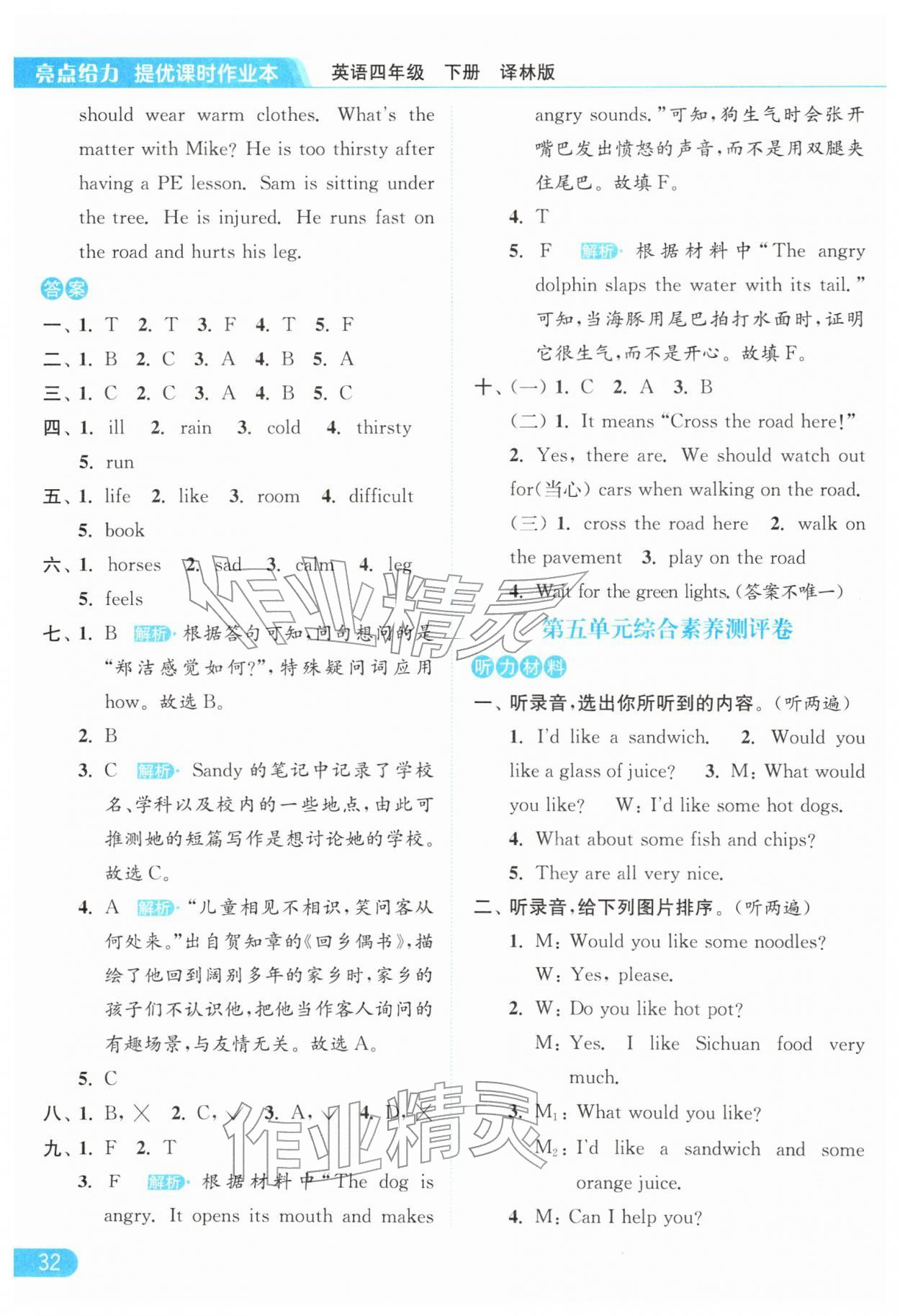 2026年亮点给力提优课时作业本四年级英语下册译林版第32页