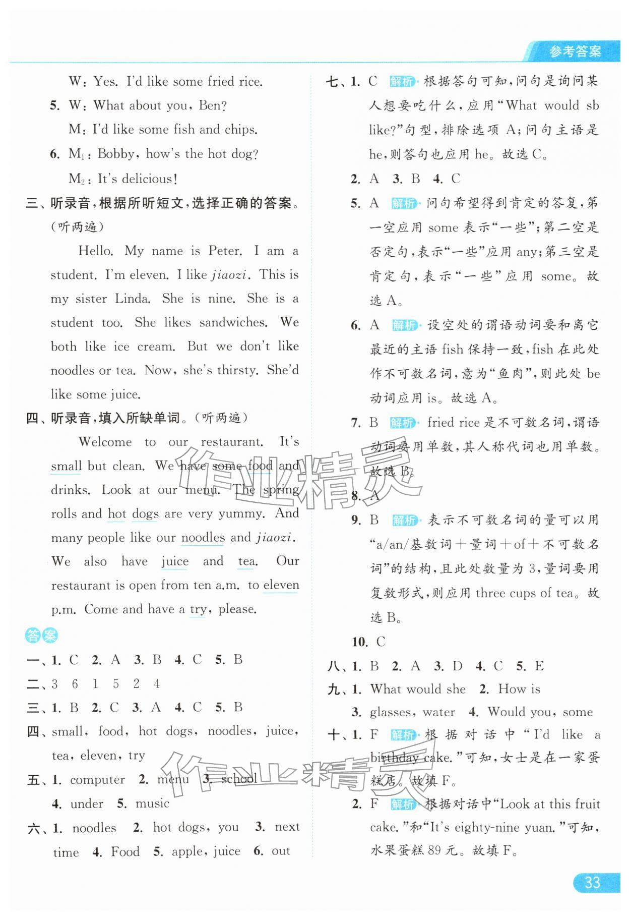 2026年亮点给力提优课时作业本四年级英语下册译林版第33页