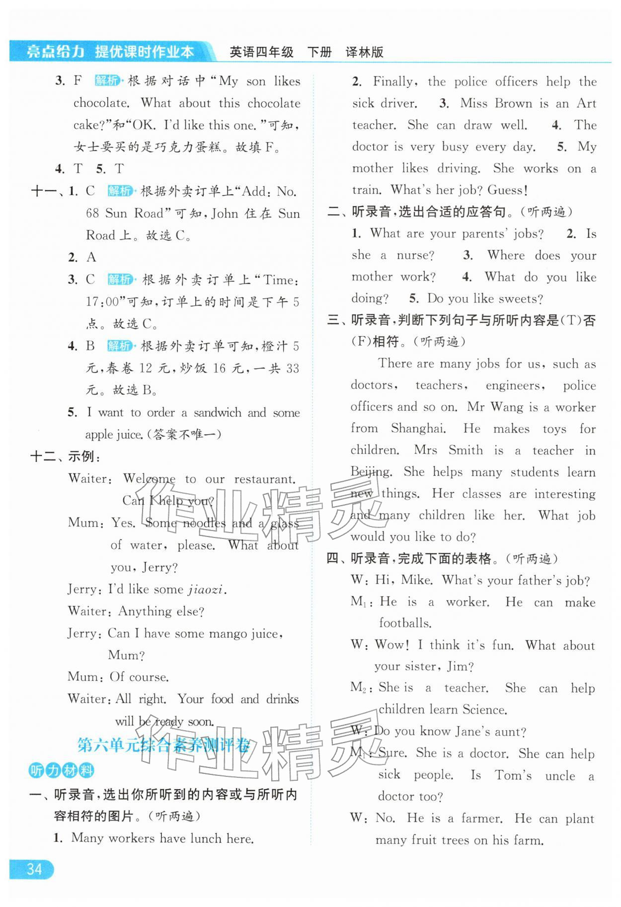 2026年亮点给力提优课时作业本四年级英语下册译林版第34页