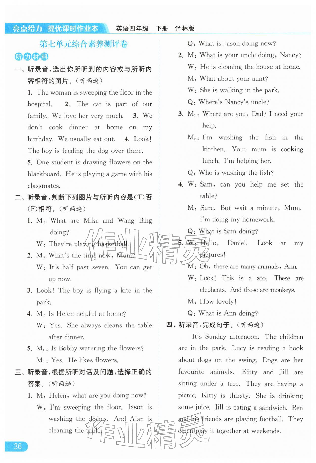 2026年亮点给力提优课时作业本四年级英语下册译林版第36页