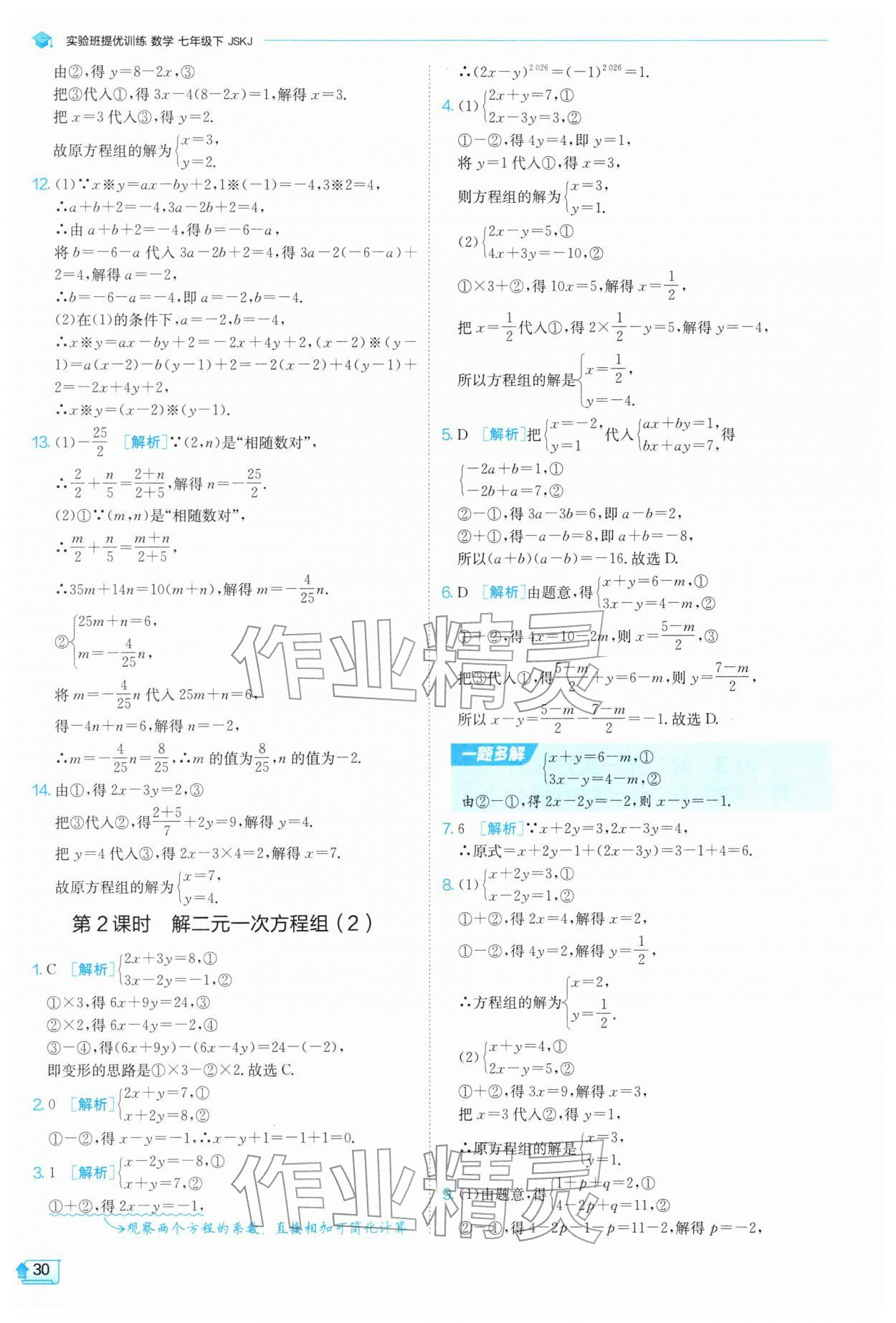 2026年实验班提优训练七年级数学下册苏科版参考答案第30页