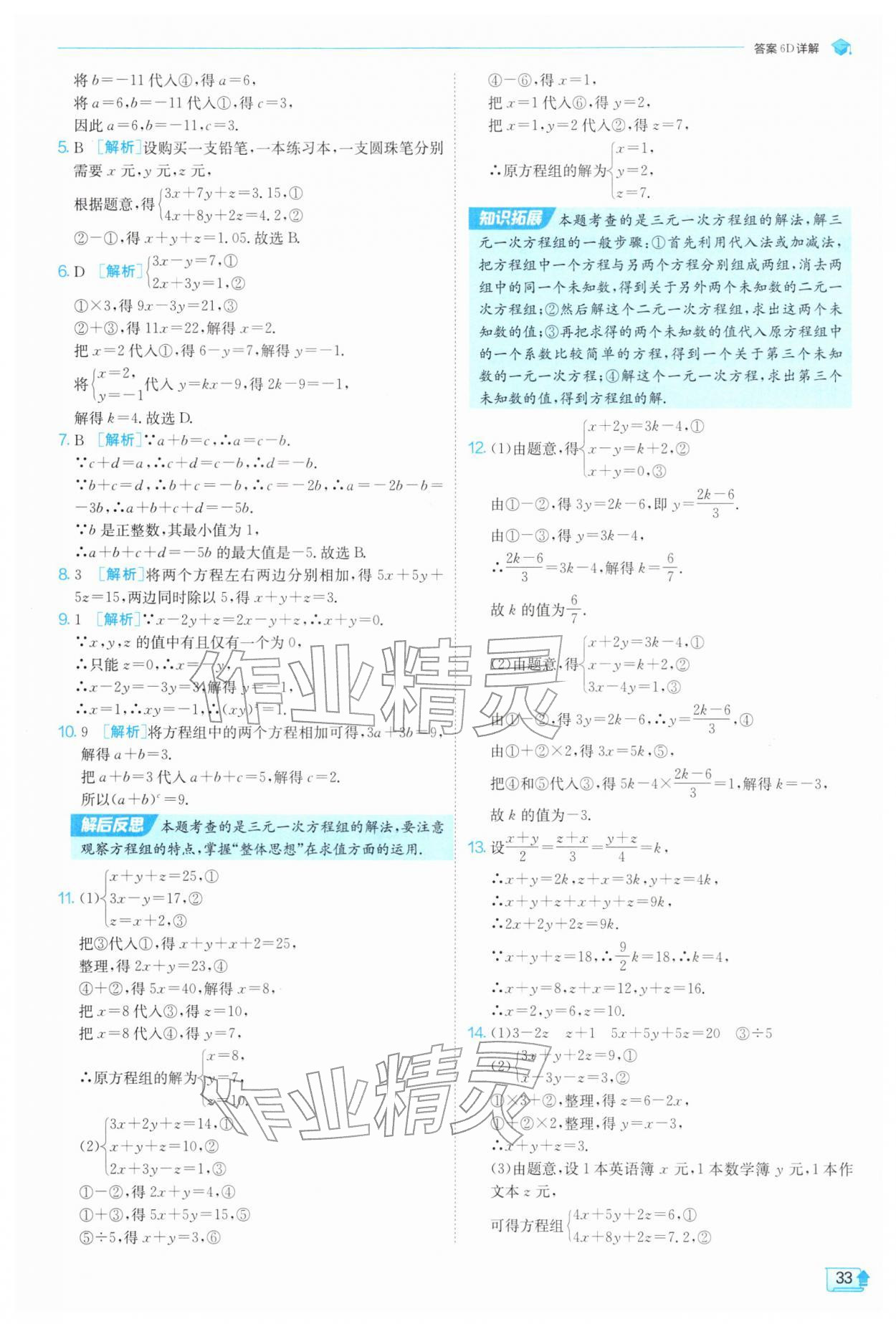 2026年实验班提优训练七年级数学下册苏科版参考答案第33页