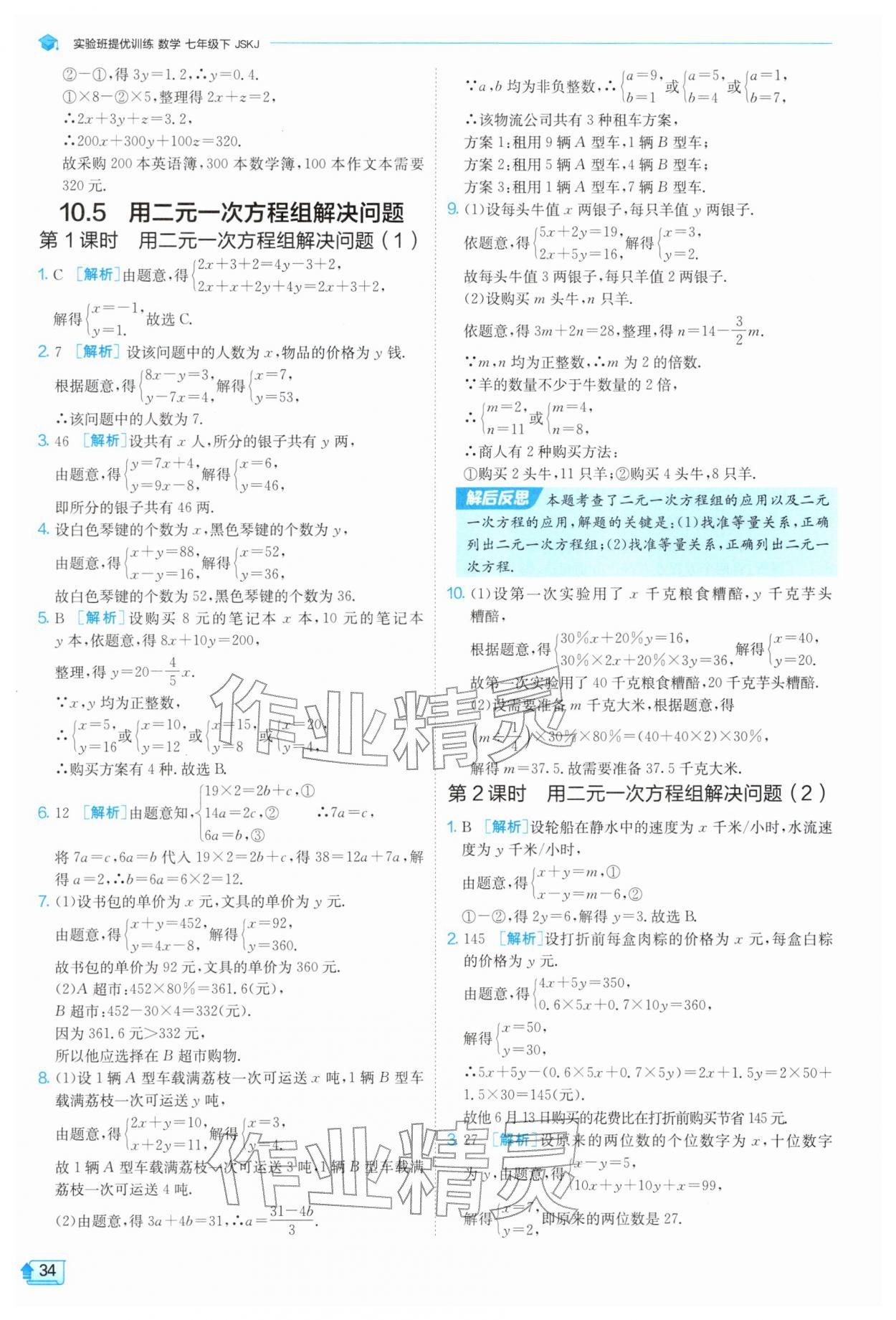 2026年实验班提优训练七年级数学下册苏科版参考答案第34页