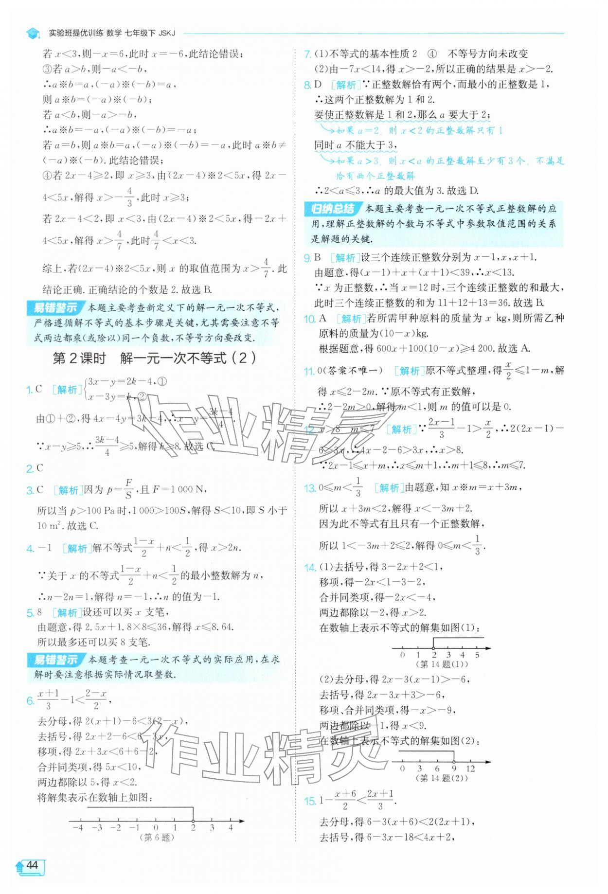 2026年实验班提优训练七年级数学下册苏科版参考答案第44页