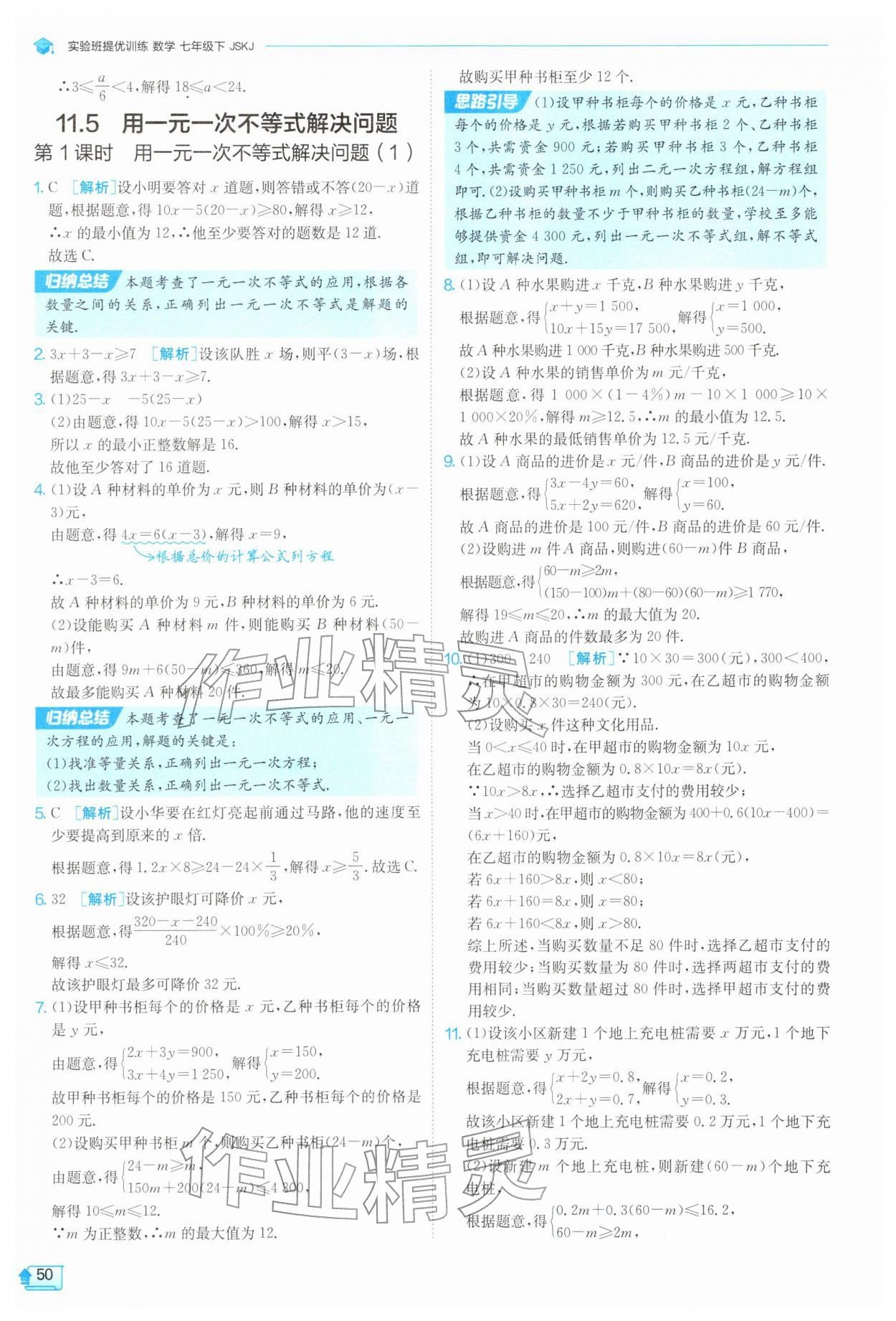 2026年实验班提优训练七年级数学下册苏科版参考答案第50页